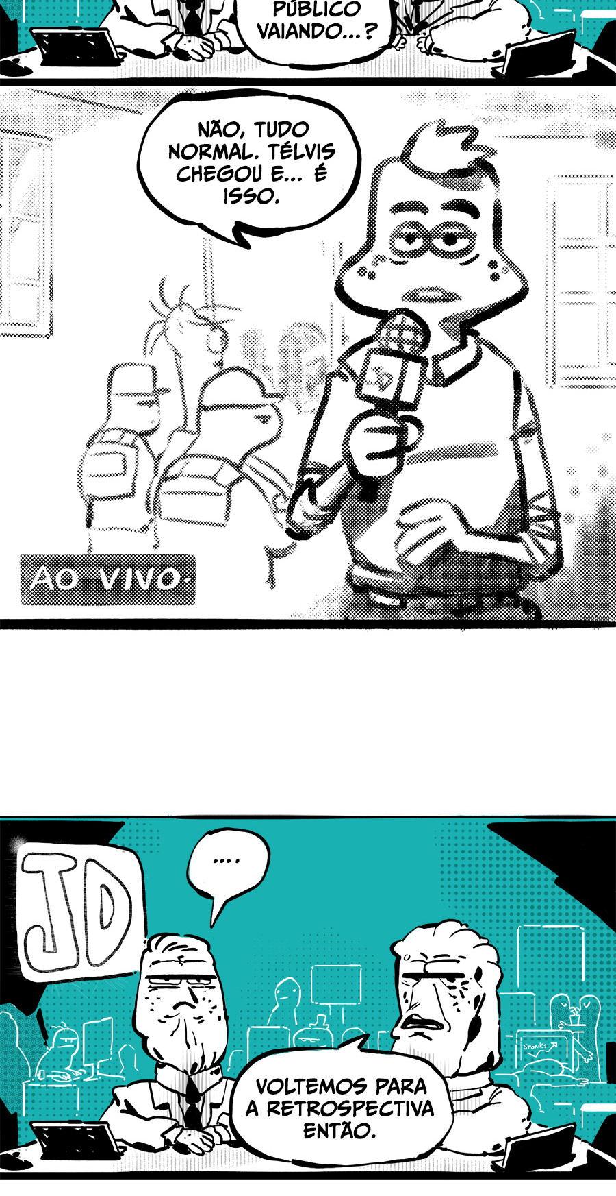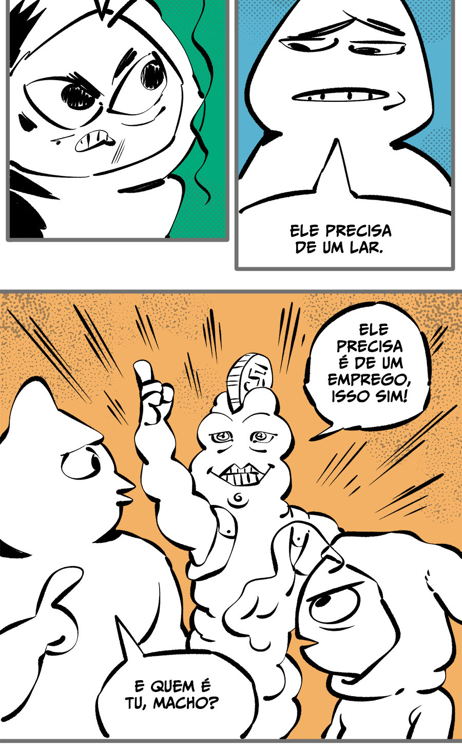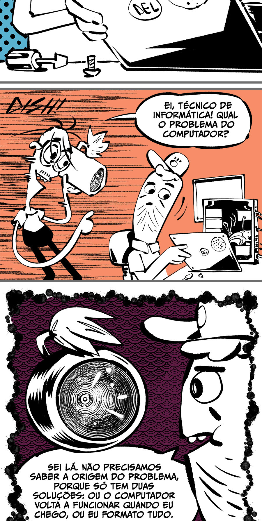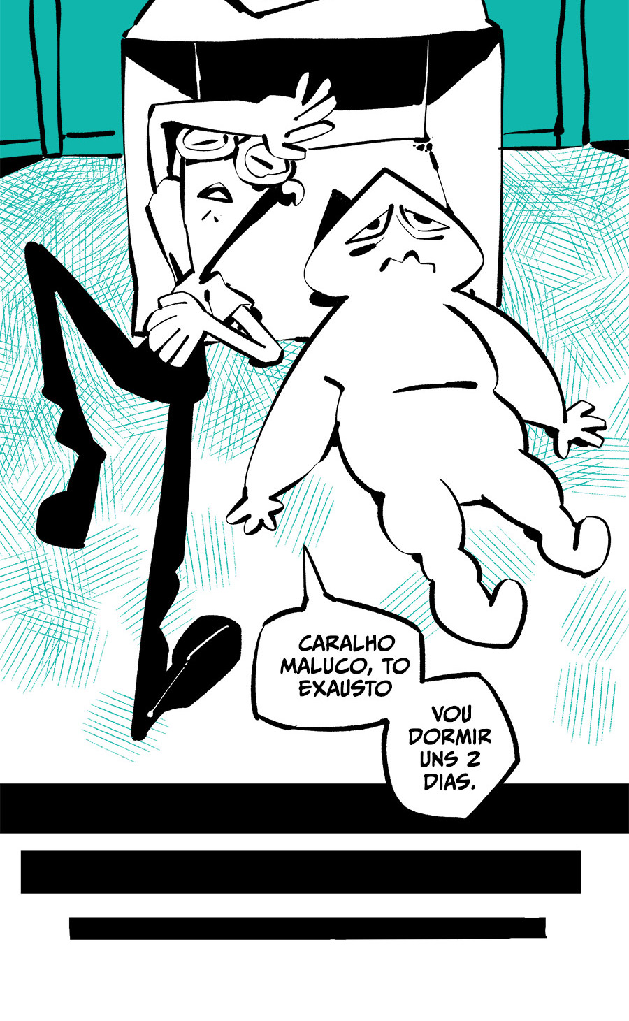 Entre empregos humilhantes, diarreias evangélicas, spoilers violentos, coaches do tempo e síndicos fascistas, Télvis contará com seu amigo Dark e com a misteriosa Câmera para fazer desse mundo intestinal um lugar menos nojento. Não no sentido higiênico, claro.