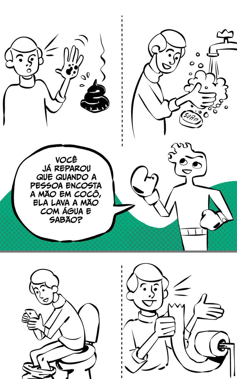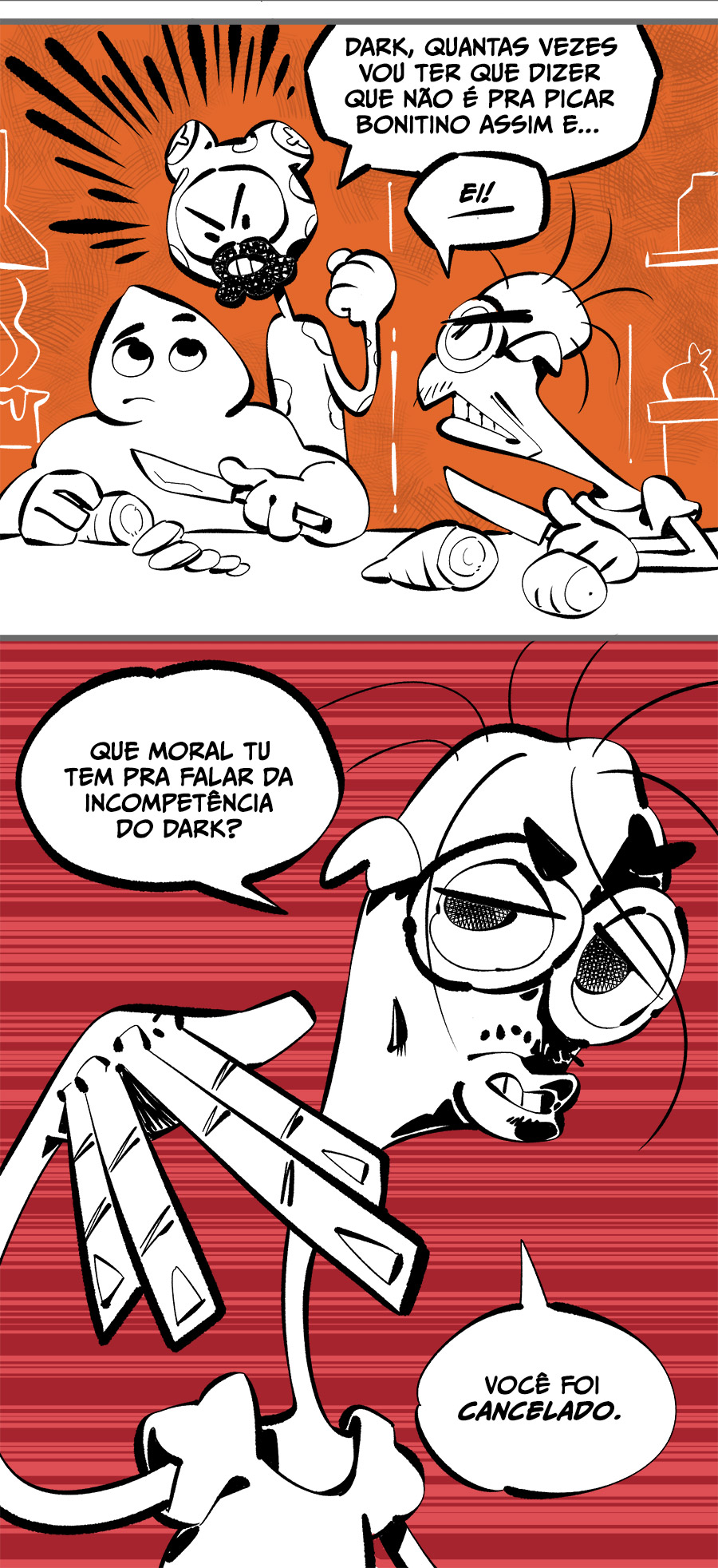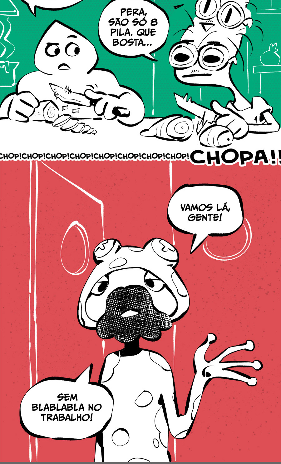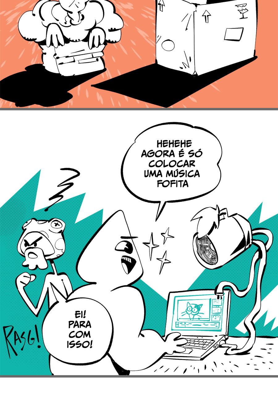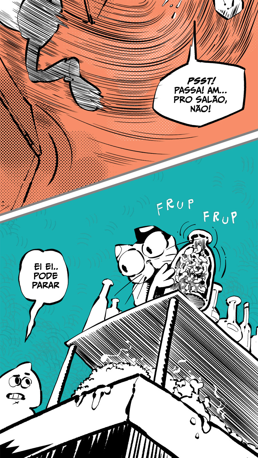 Entre empregos humilhantes, diarreias evangélicas, spoilers violentos, coaches do tempo e síndicos fascistas, Télvis contará com seu amigo Dark e com a misteriosa Câmera para fazer desse mundo intestinal um lugar menos nojento. Não no sentido higiênico, claro.