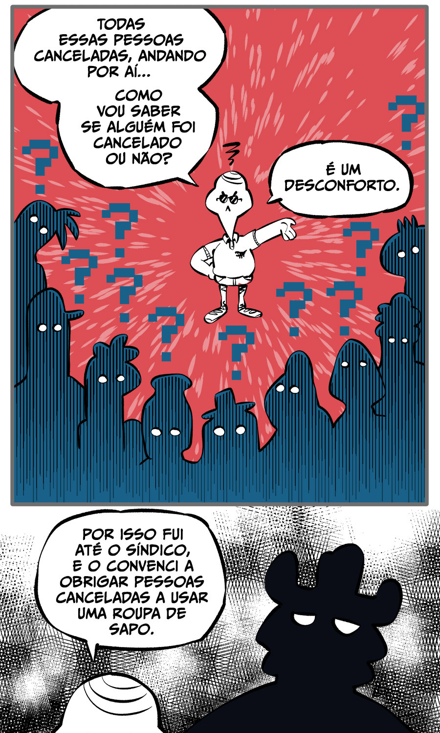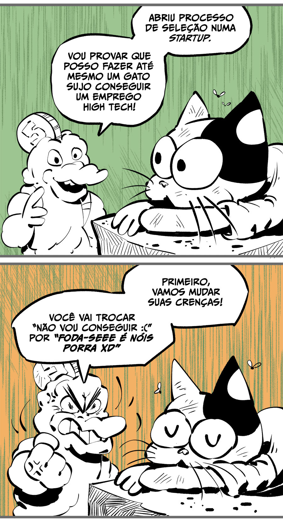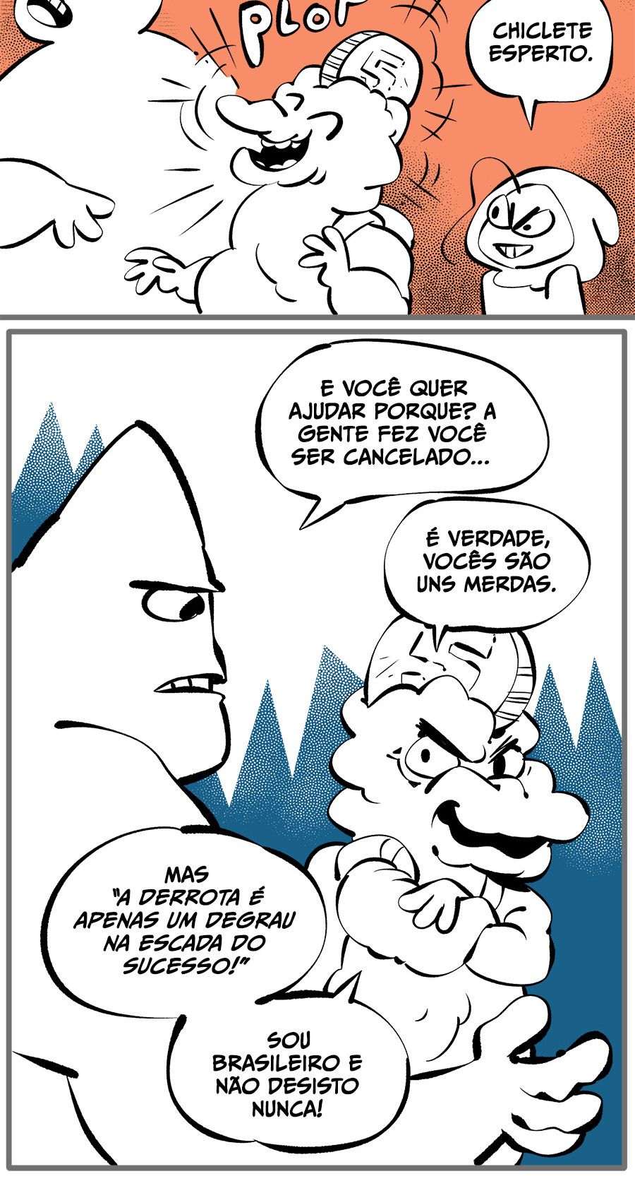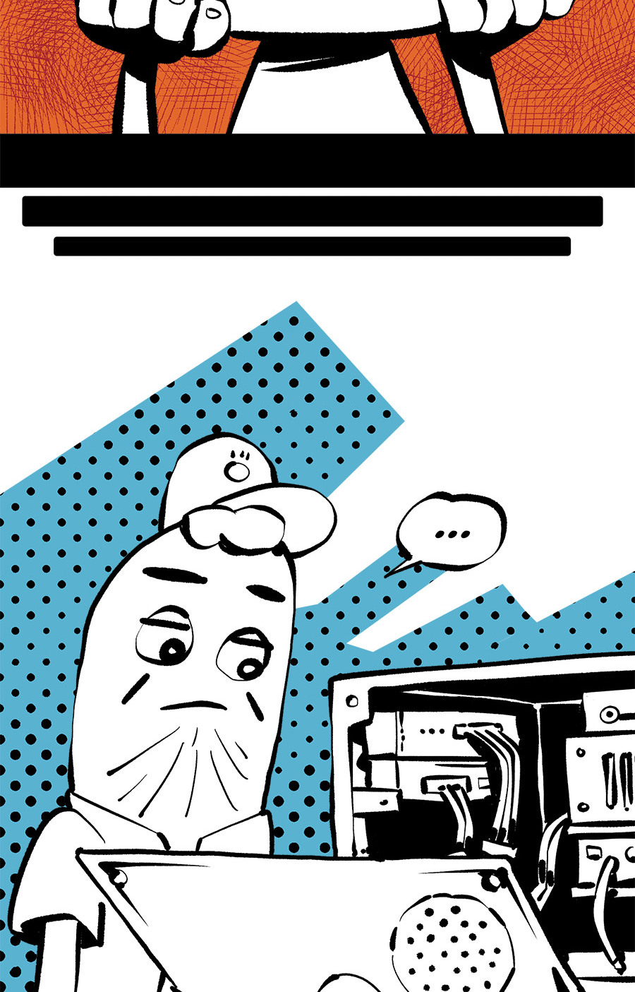 Entre empregos humilhantes, diarreias evangélicas, spoilers violentos, coaches do tempo e síndicos fascistas, Télvis contará com seu amigo Dark e com a misteriosa Câmera para fazer desse mundo intestinal um lugar menos nojento. Não no sentido higiênico, claro.