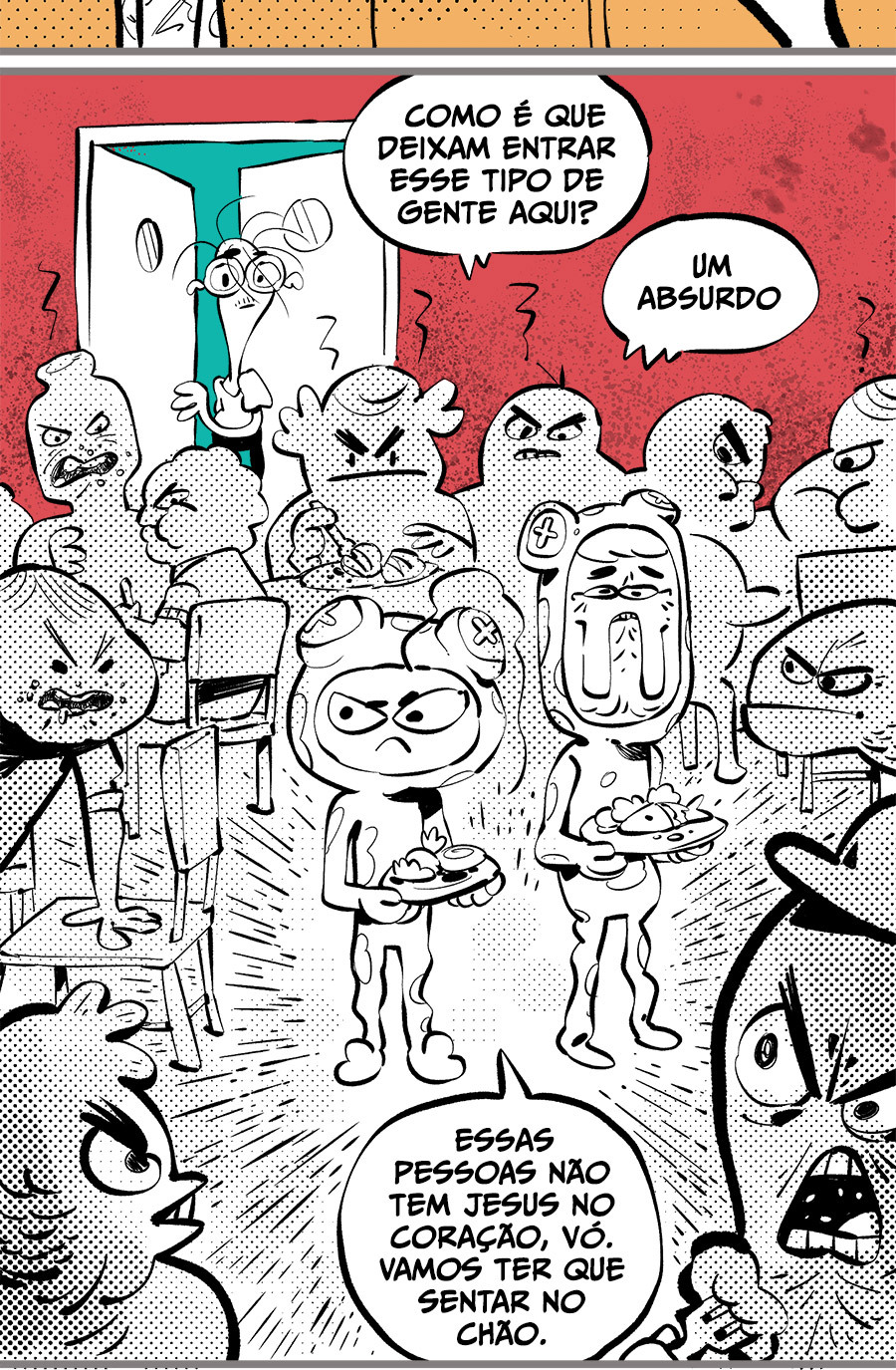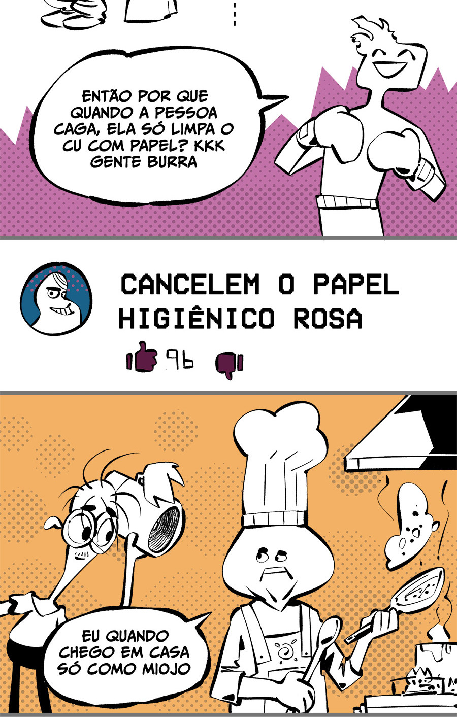 Essa é a história de um verme alienado chamado Télvis, se fudendo muito ao ser retirado de sua bolha, encarando a realidade dos corredores do enorme edifício intestinal Le Tripat. Com bondosas senhoras militantes da pena de morte, patrões hipsters assediadores, cabelereiros homofóbicos e punks de Jesus, o prédio é um lugar cheio de contradições que vive a “mamadeiradepiroquização” da sociedade, um verdadeiro intestino ultra conservador.