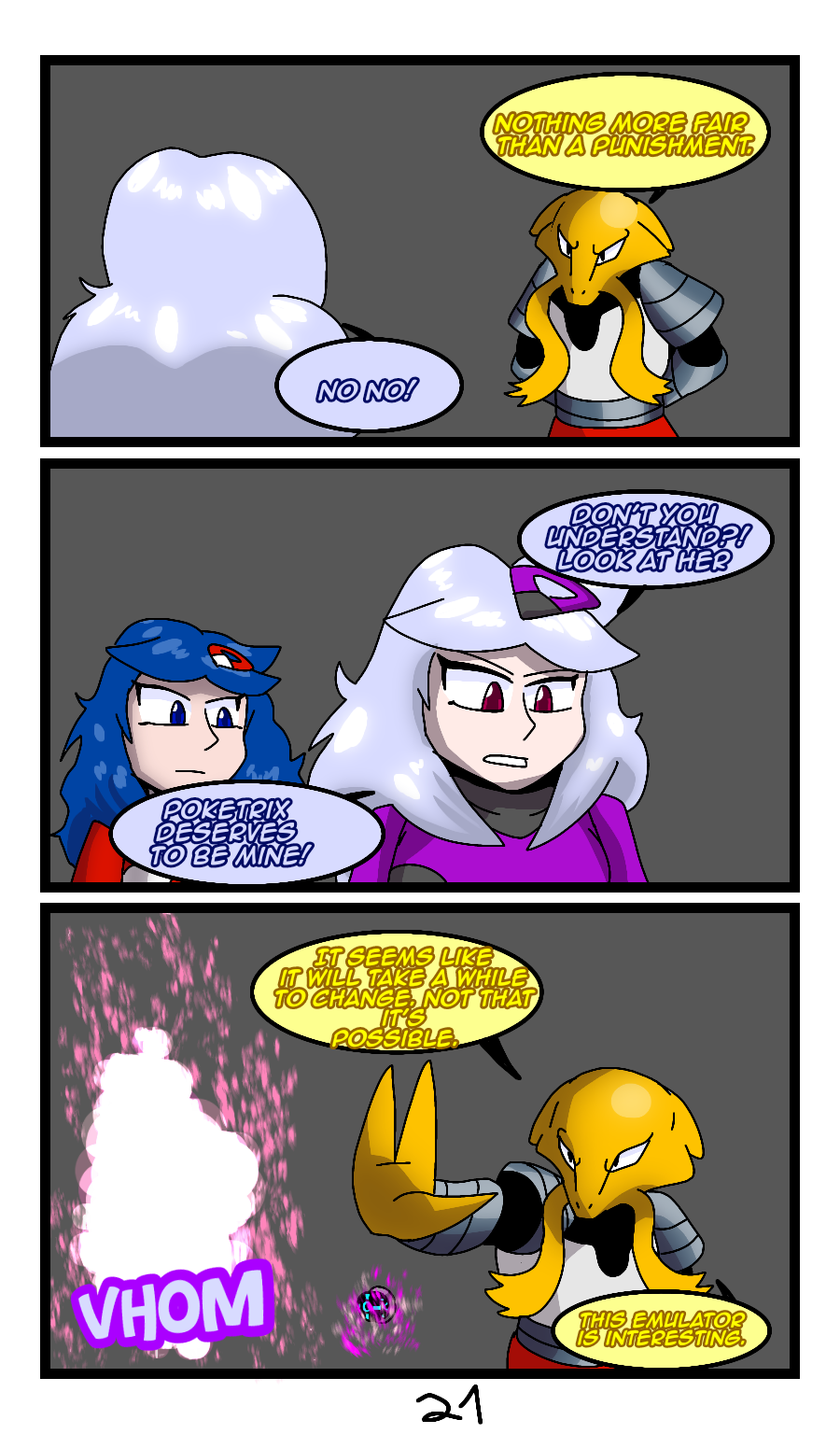 Rose is chased by one of the Poketrix creator's Pokémon, who is now in the same human form as her, wanting the Poketrix above all else.