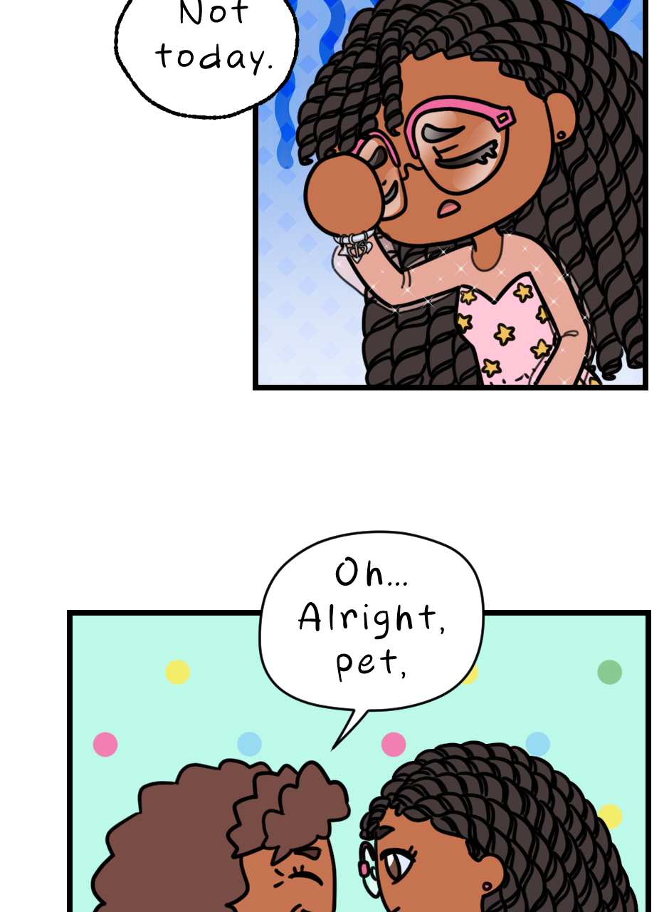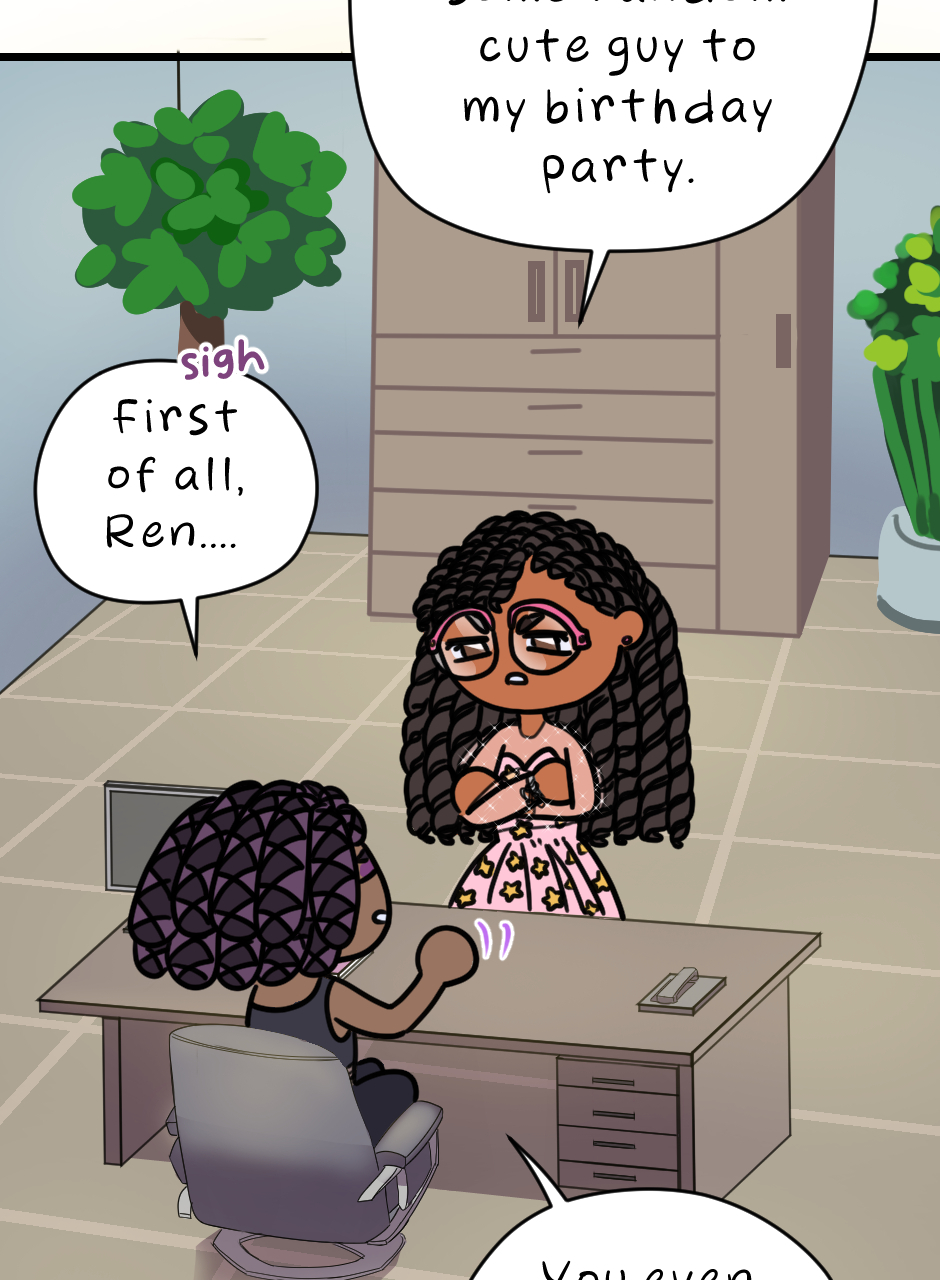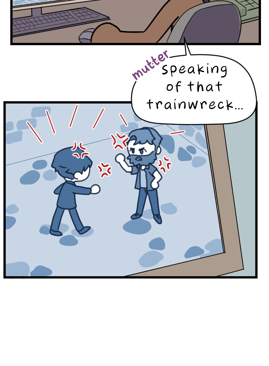 Is she going to deal with these two men fighting each other.