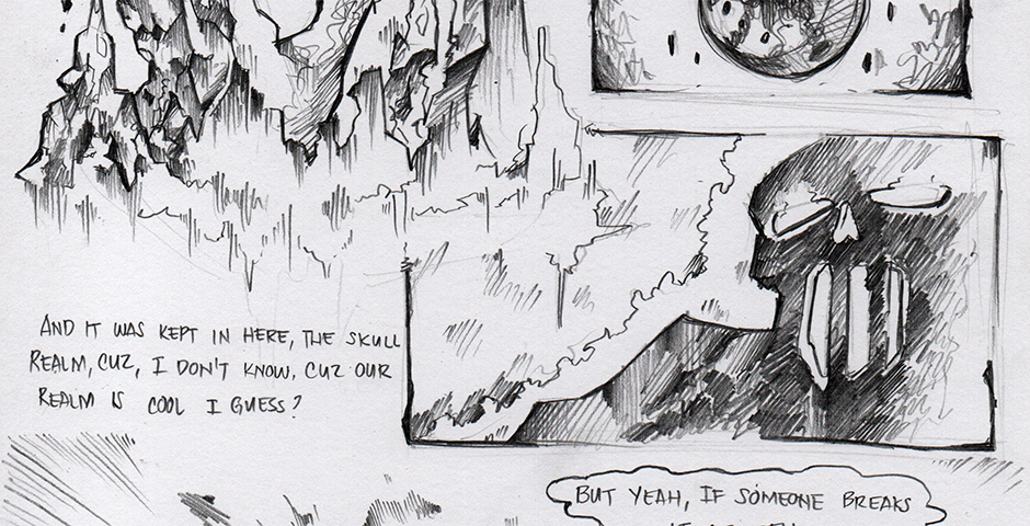 Chapter 1 Page 3 a cheesy backstory about the orb as told by Dan (the paranoid skull)