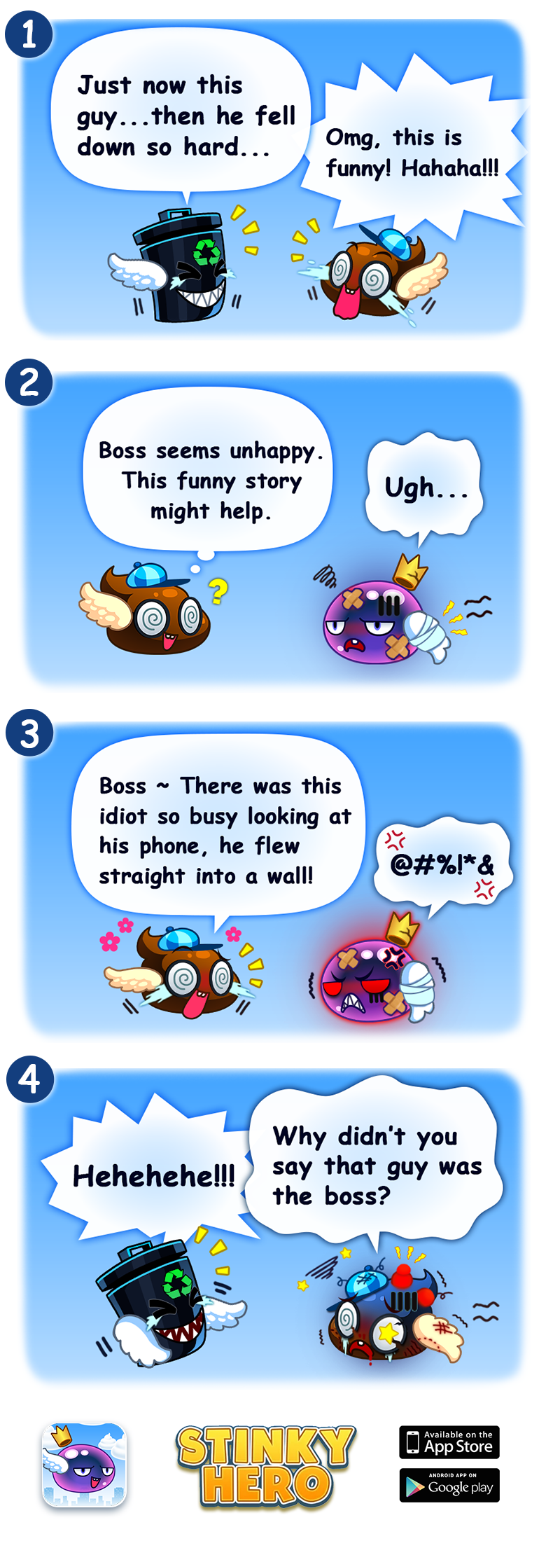 Stinky Hero mobile game is our latest product. Different from the flapping bird, stink heroes not only can flap it can also DASH in mid-air, making it a more fun and exciting flappy experience! Also characters you play are so cute you gonna love them at first sight. Stinky hero loves to collect rubbish. Collect as many as you can and we will reward you with more cute and exciting characters! Now go on and try out Stink Hero’s adventure!
