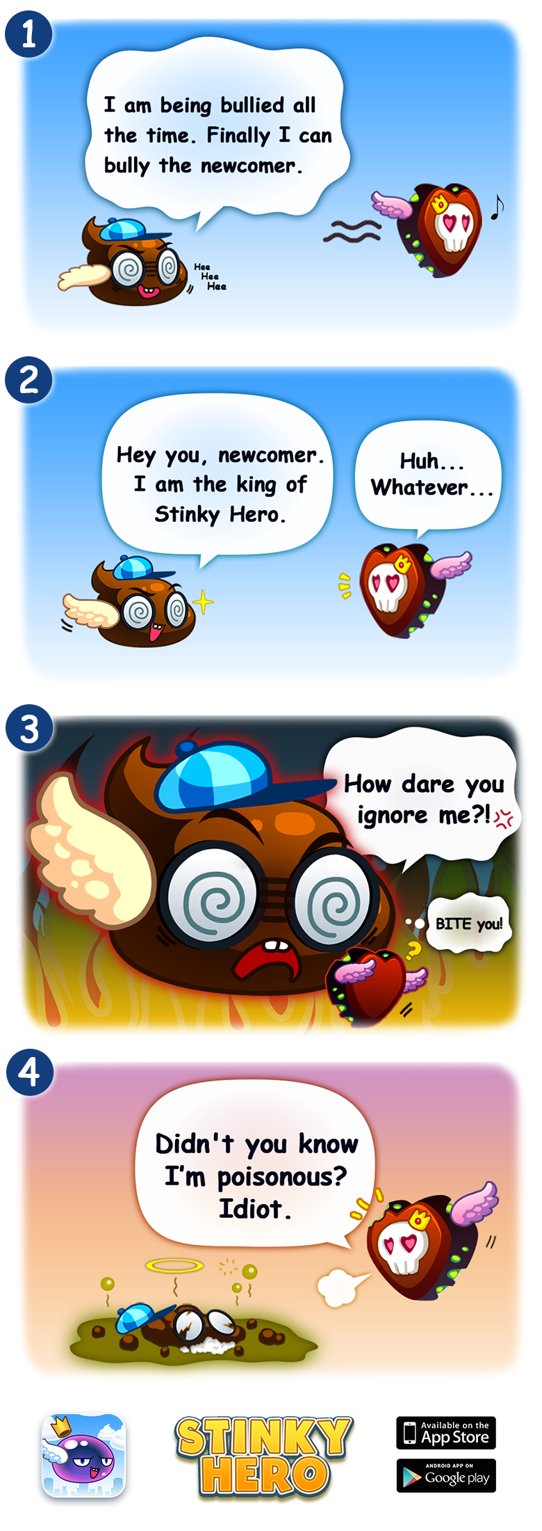 Stinky Hero mobile game is our latest product. Different from the flapping bird, stink heroes not only can flap it can also DASH in mid-air, making it a more fun and exciting flappy experience! Also characters you play are so cute you gonna love them at first sight. Stinky hero loves to collect rubbish. Collect as many as you can and we will reward you with more cute and exciting characters! Now go on and try out Stink Hero’s adventure!