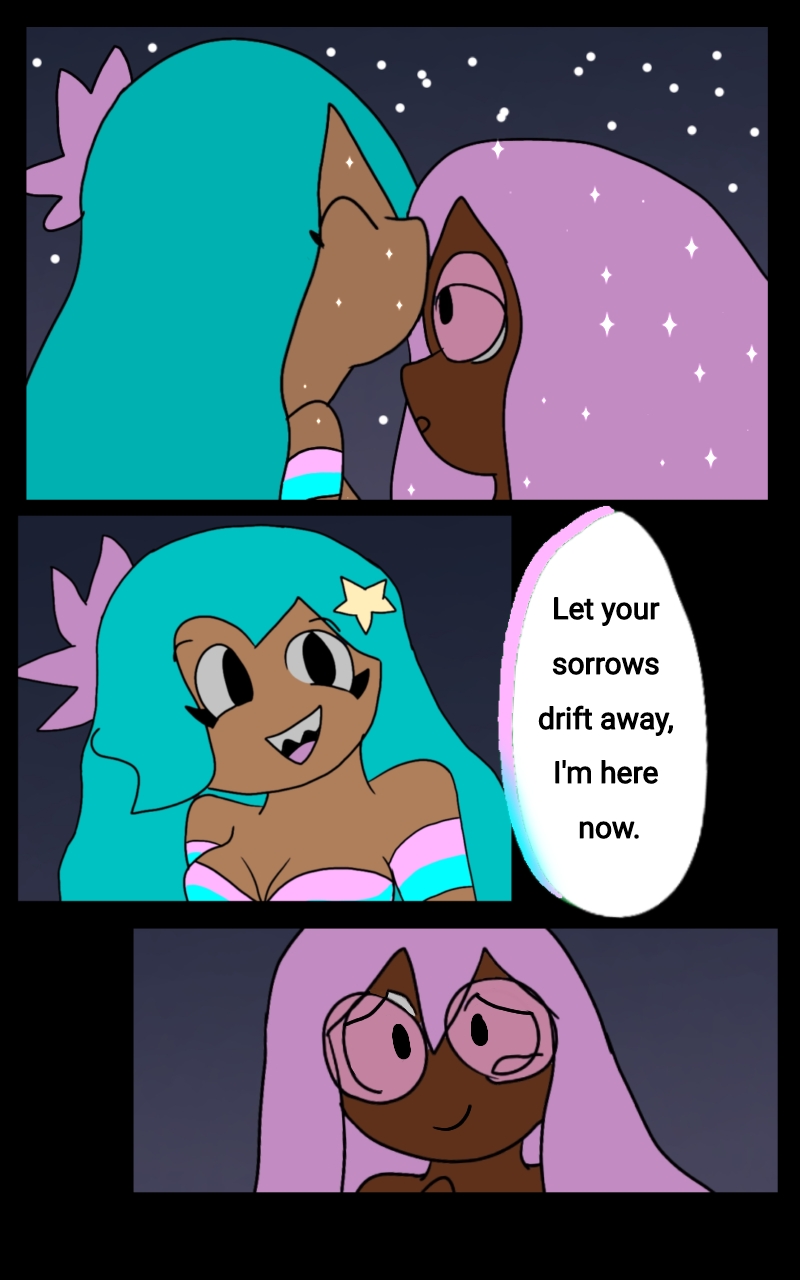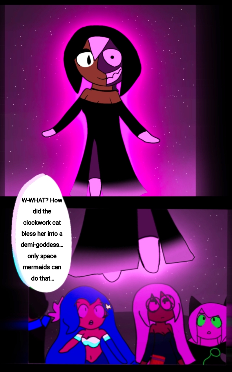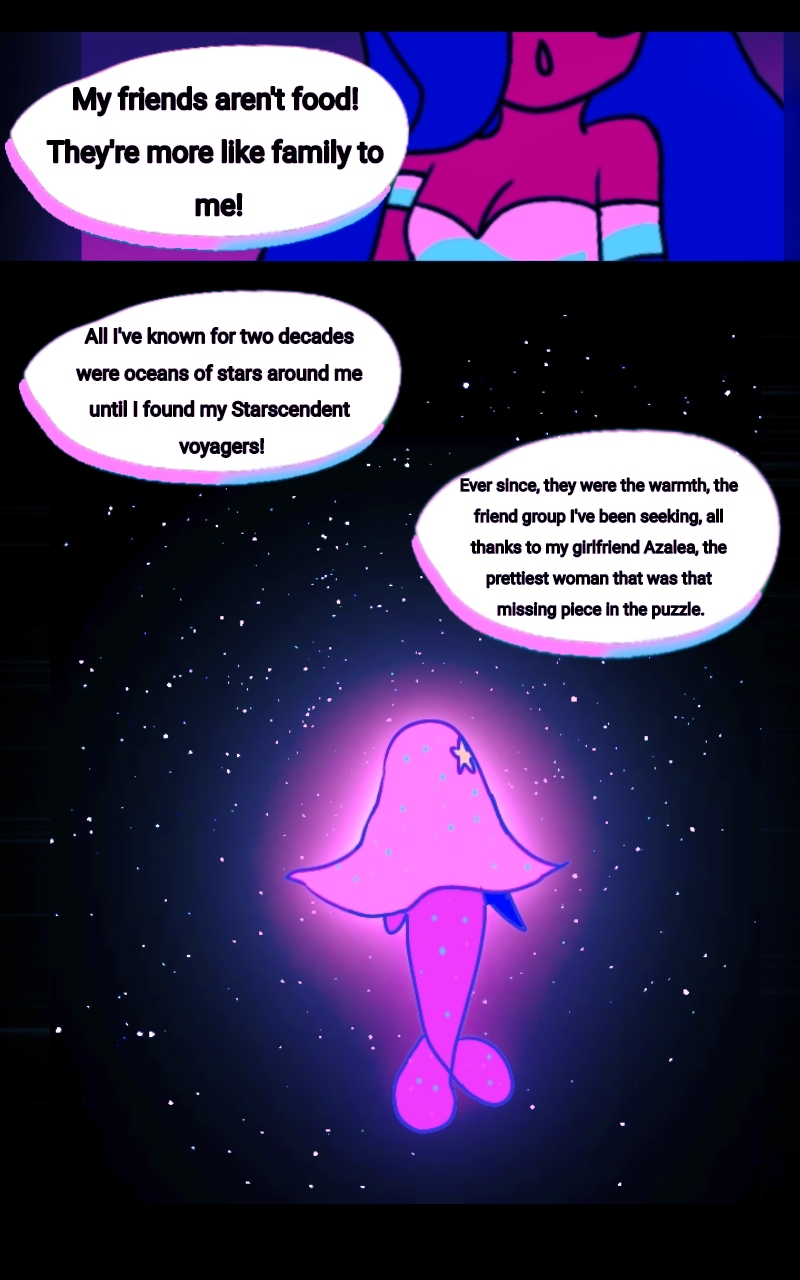 Set in an Alternate 2009, Starscendence is a Fantasy Romance Story of a group of college students transformed into Demi-Gods thanks to Kailani, a space mermaid that's the fallen goddess of their universe. With her help, they explore the reimagined cosmos to seek Starscendence, a heavenly blessing that makes anyone into a god, to use against breachers from different universes.