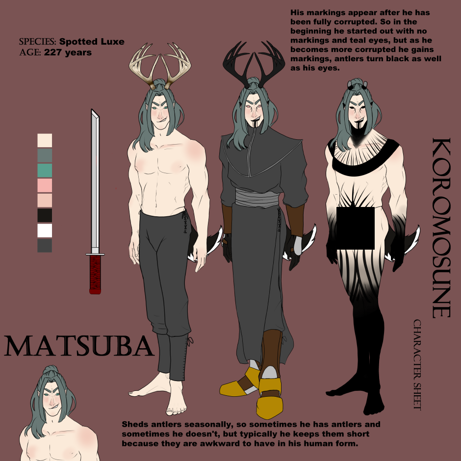 A character sheet for Okheanna, though I go into more detail about him on my Patreon. <3