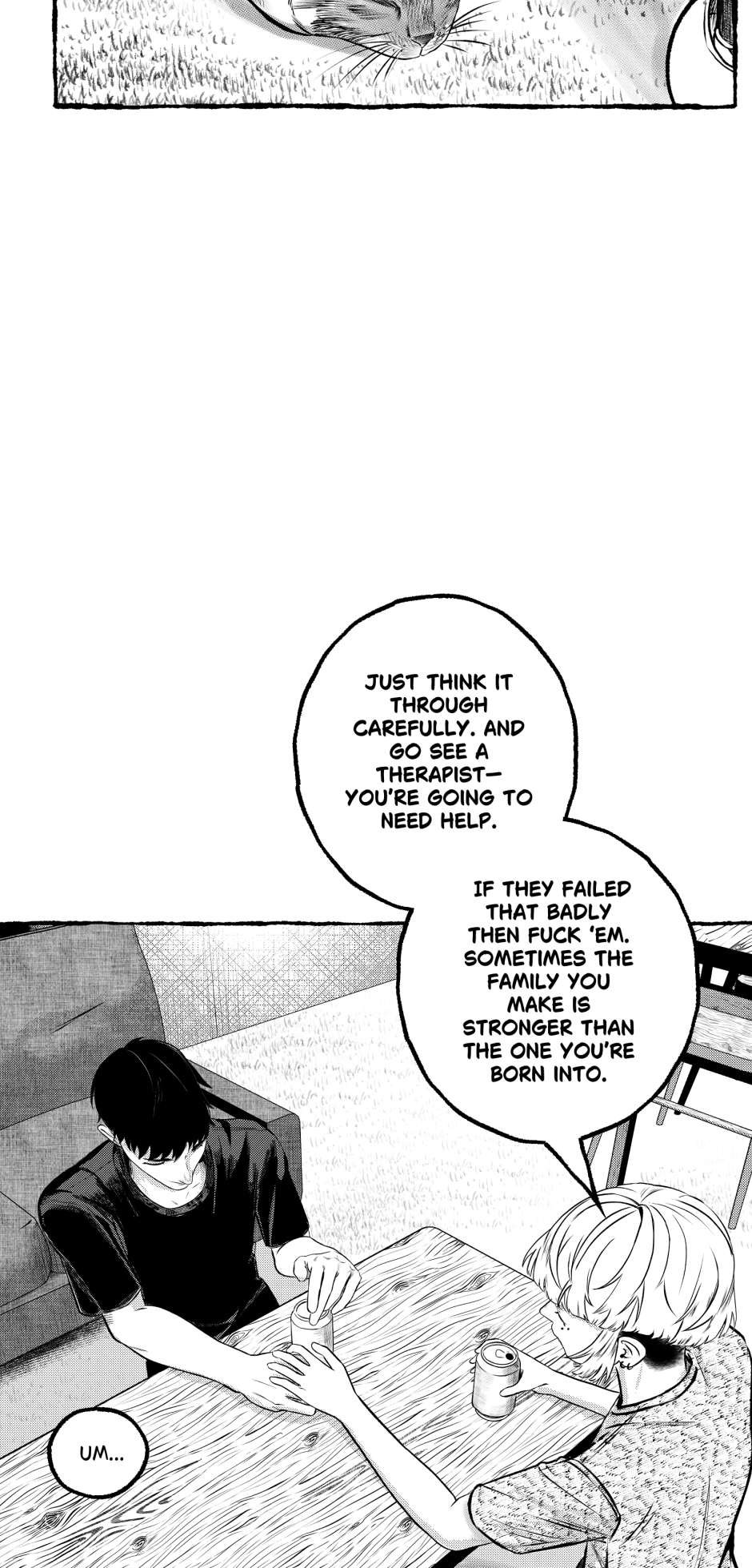Story contains swearing, alcohol and domestic violence, mature/sexual situations, inconsistent art.