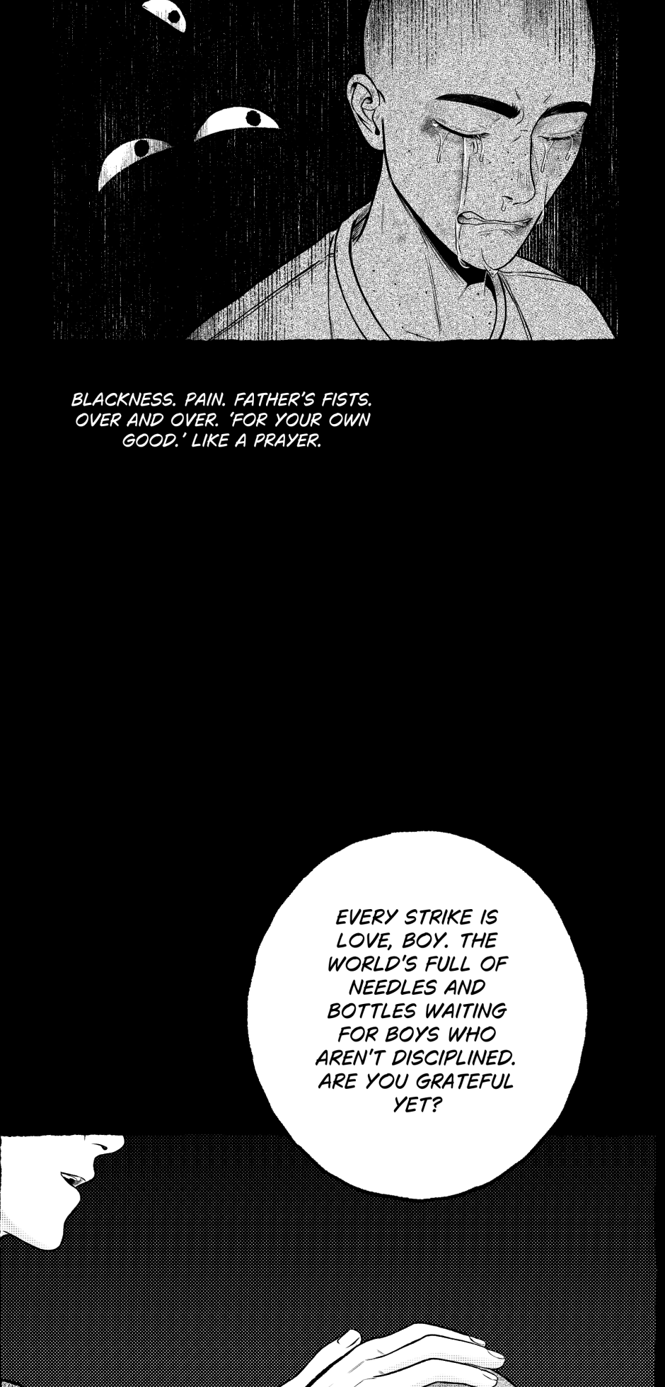 Story contains swearing, alcohol and domestic violence, mature/sexual situations, inconsistent art.