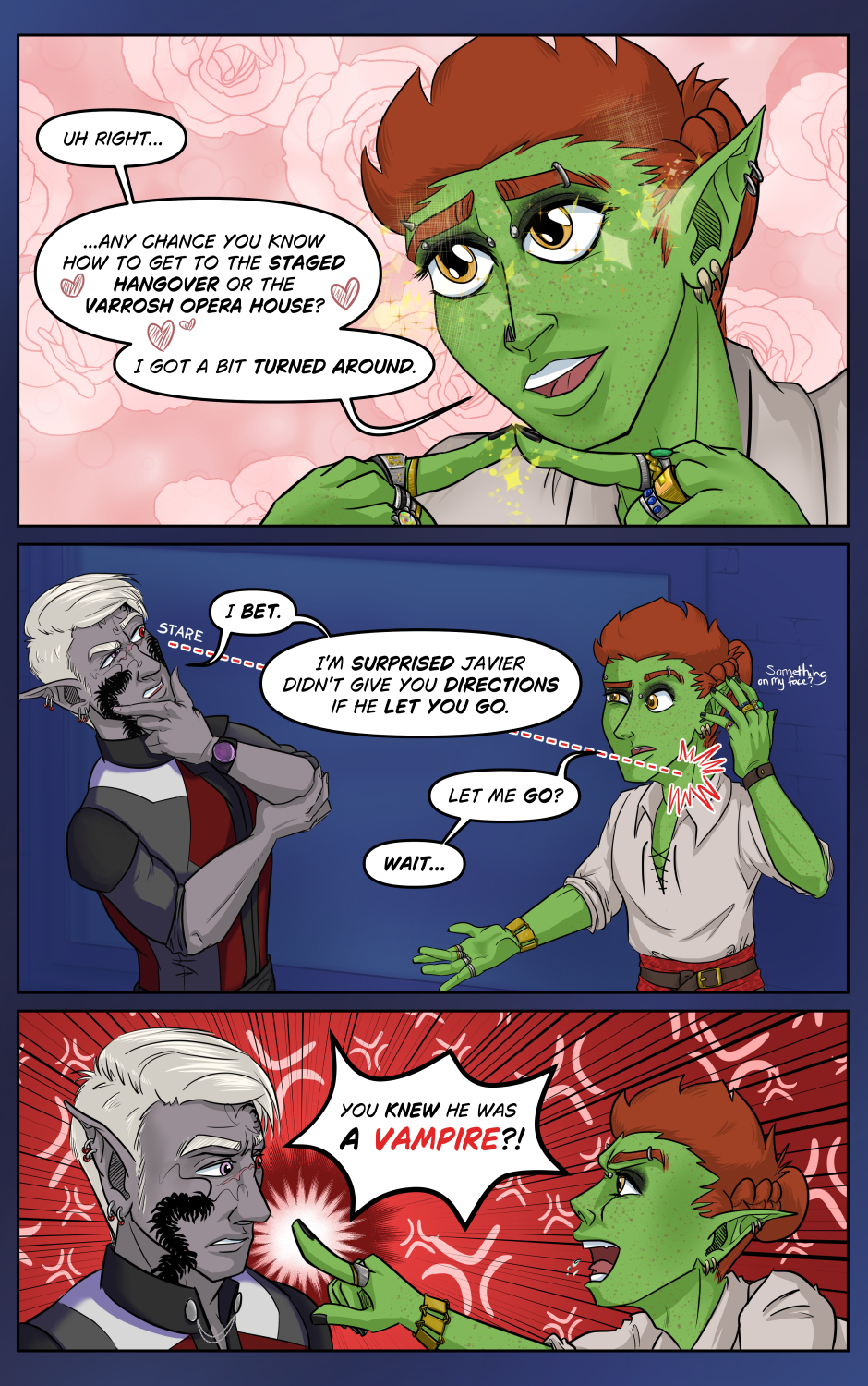 Okay Szelek, Ferris made the cute face with the big eyes, so now you are obligated to help him out of this bind. And doubly now that he knows you knew that he didn't know that Javier was a vampire the whole time. Or something...