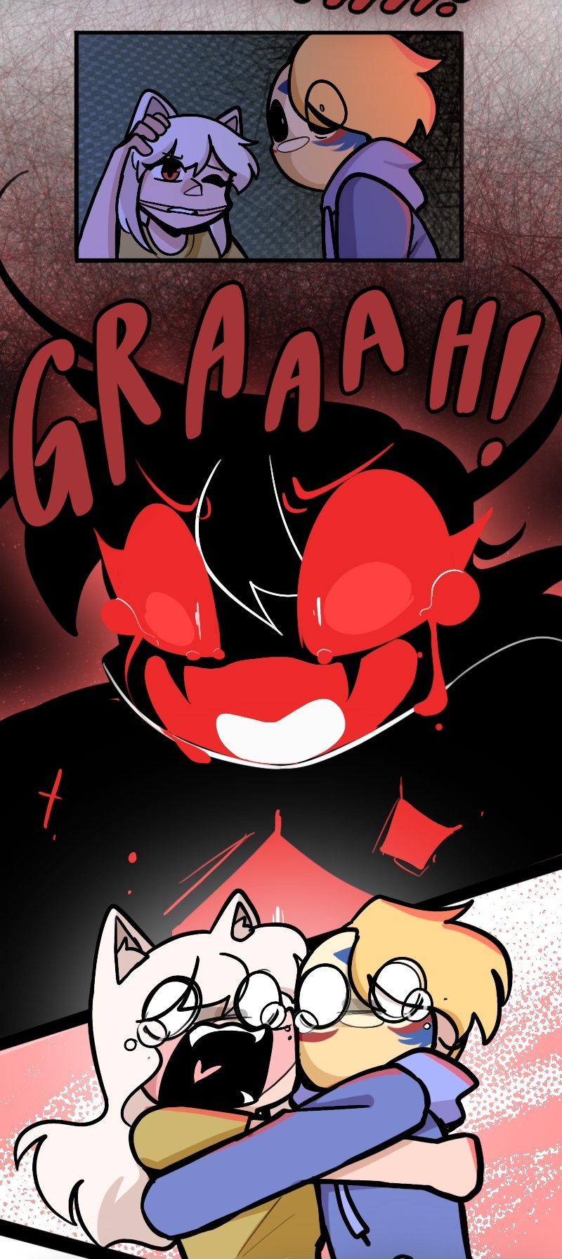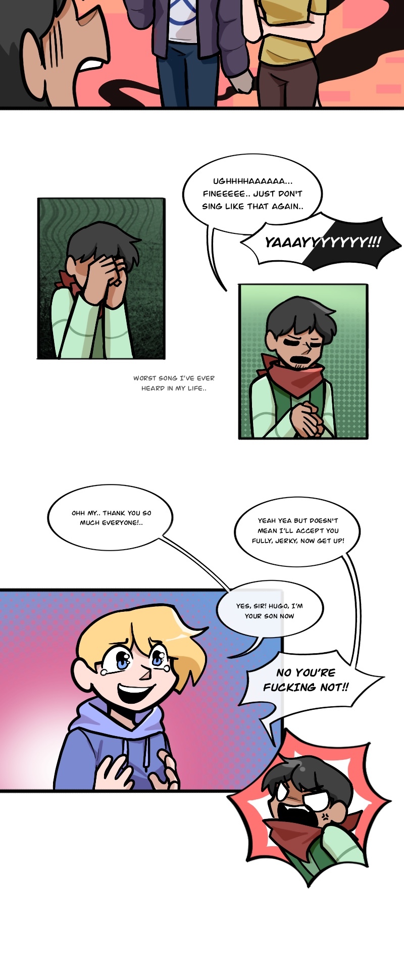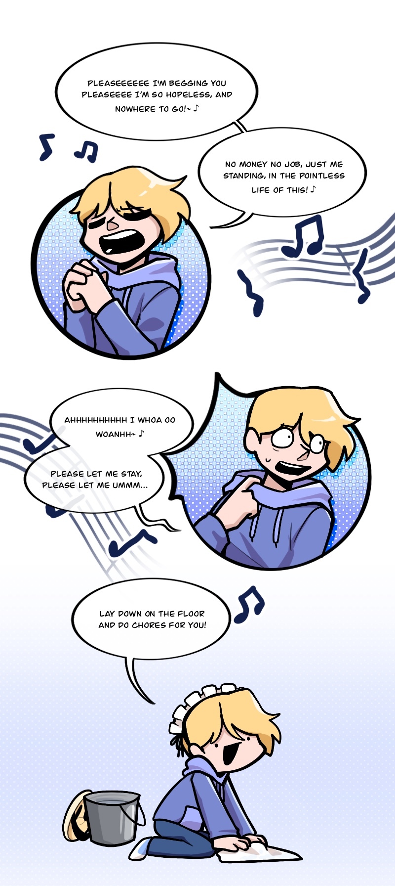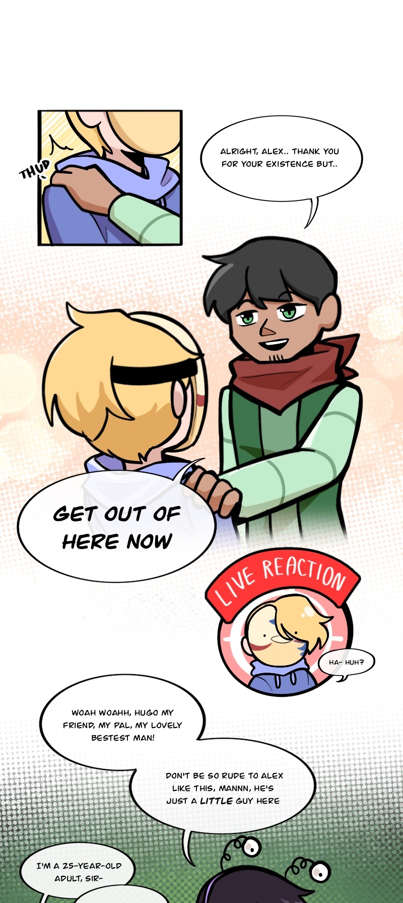 Alex, Kuchi, Hugo, and Leo, aren't heroes of this story or anything, just homeless folks, broken nobodies who try to survive in this messy society, crimes, cops, nonsense logic, who knows what could kill them(real life is horrible), maybe with illusion dark magic. "When pizzas aren't cold, there is always room for us"