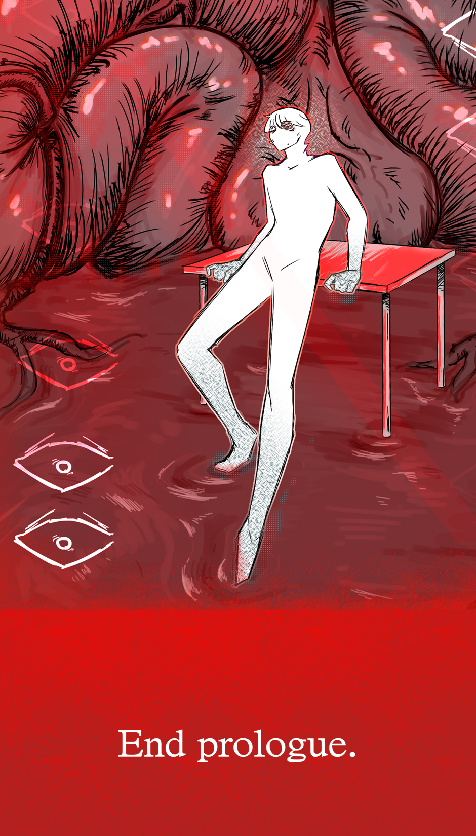 "He" opens his eyes and where once were solid walls now is wounded tissue, a living organism straining to survive itself. He should be dead, and maybe he is