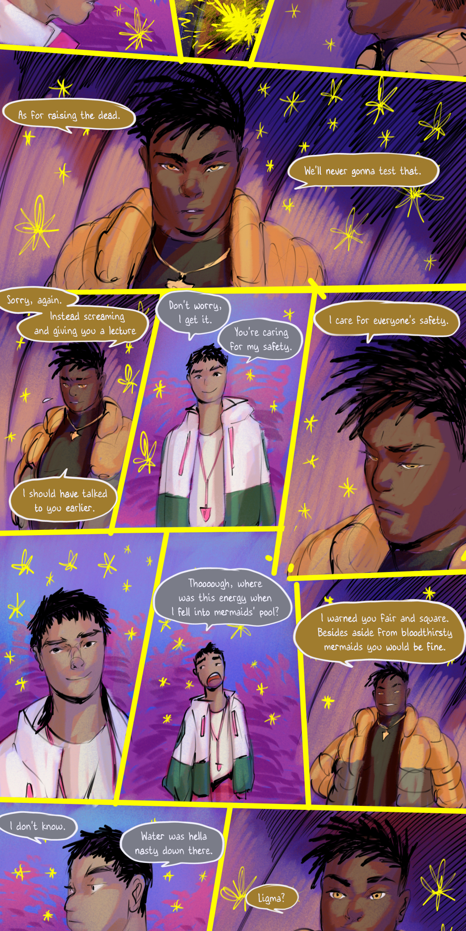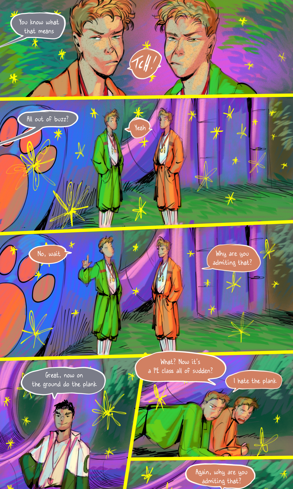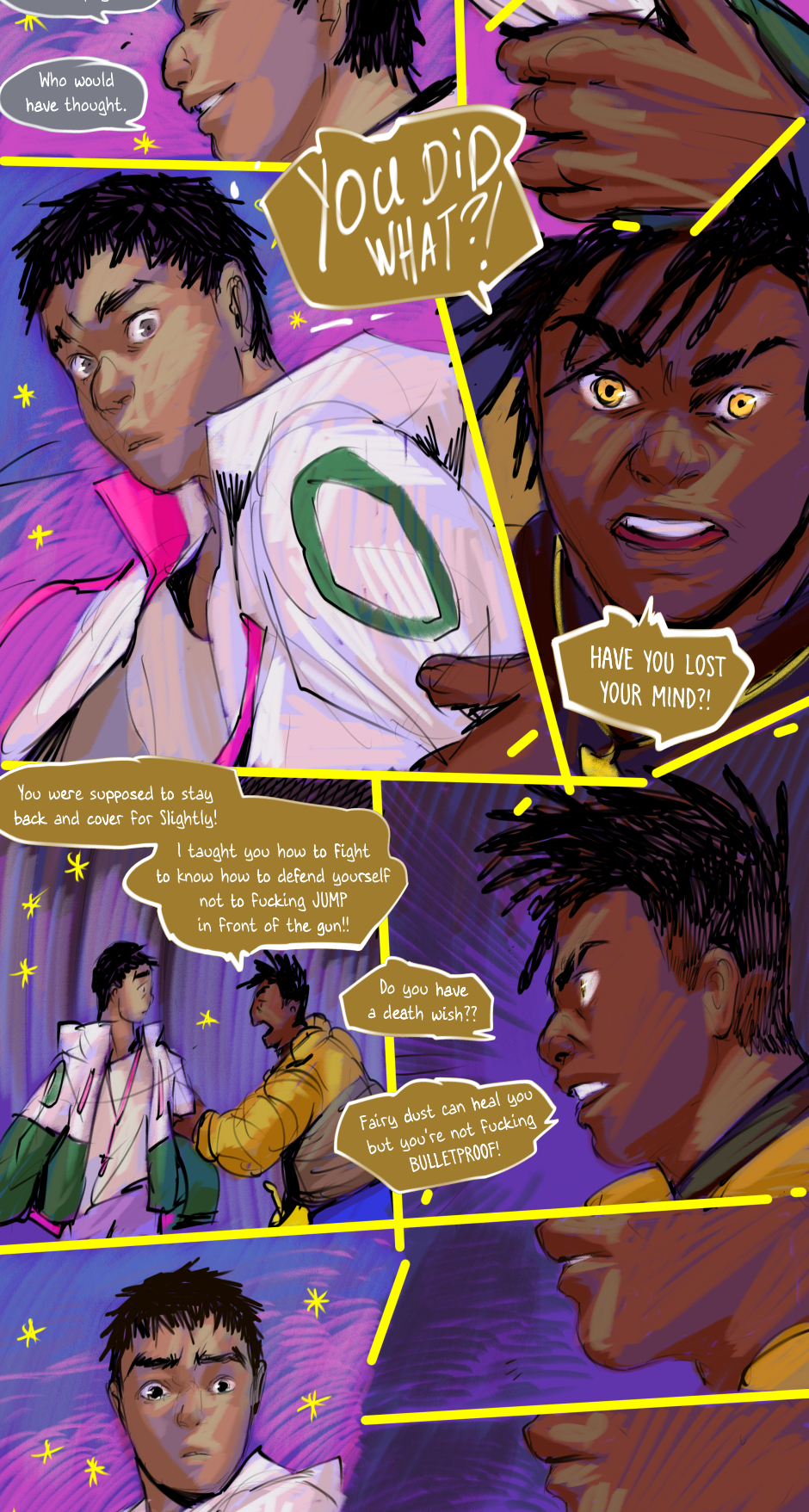 His friends become more agitated.