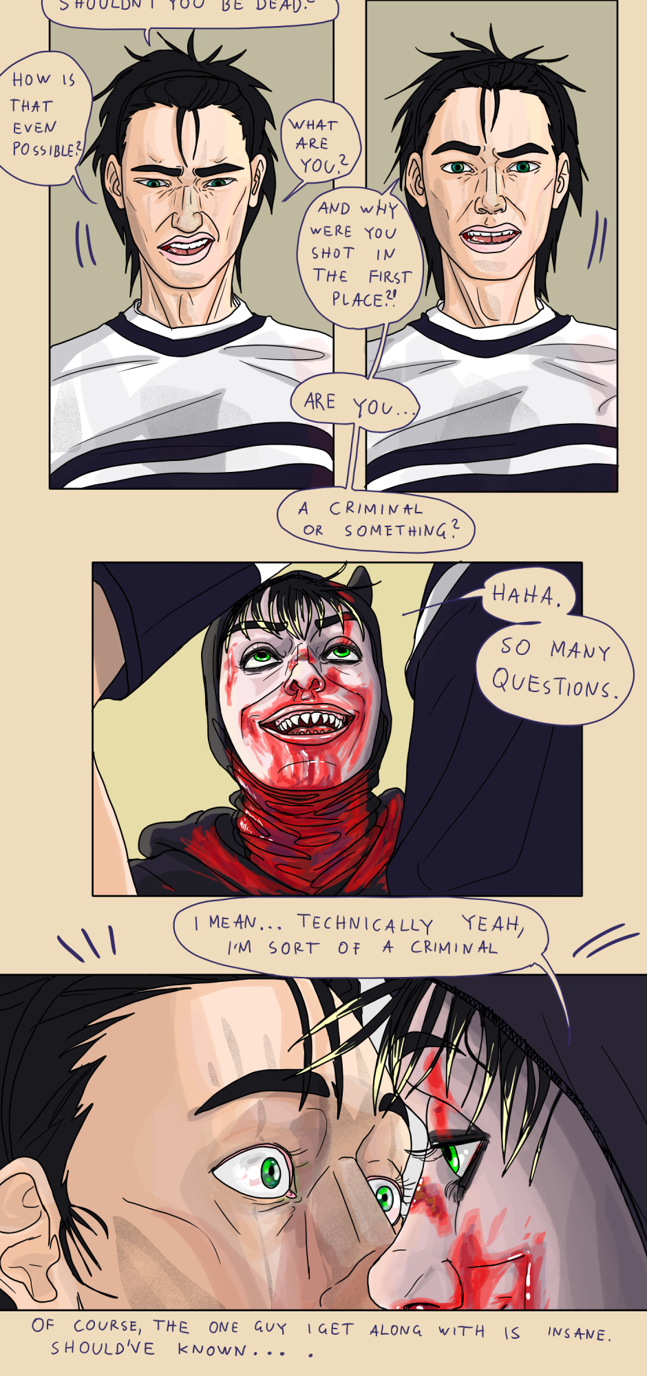A queer slice-of-life comic with a supernatural (and slightly criminal) twist. Welcome to a slightly off-kilter version of Vienna (Austria), where Steve is just trying to survive his next social encounter, thinking that's his biggest problem—until he meets an unusual criminal who turns his whole life upside down. !UPDATES every Thursday and Sunday!