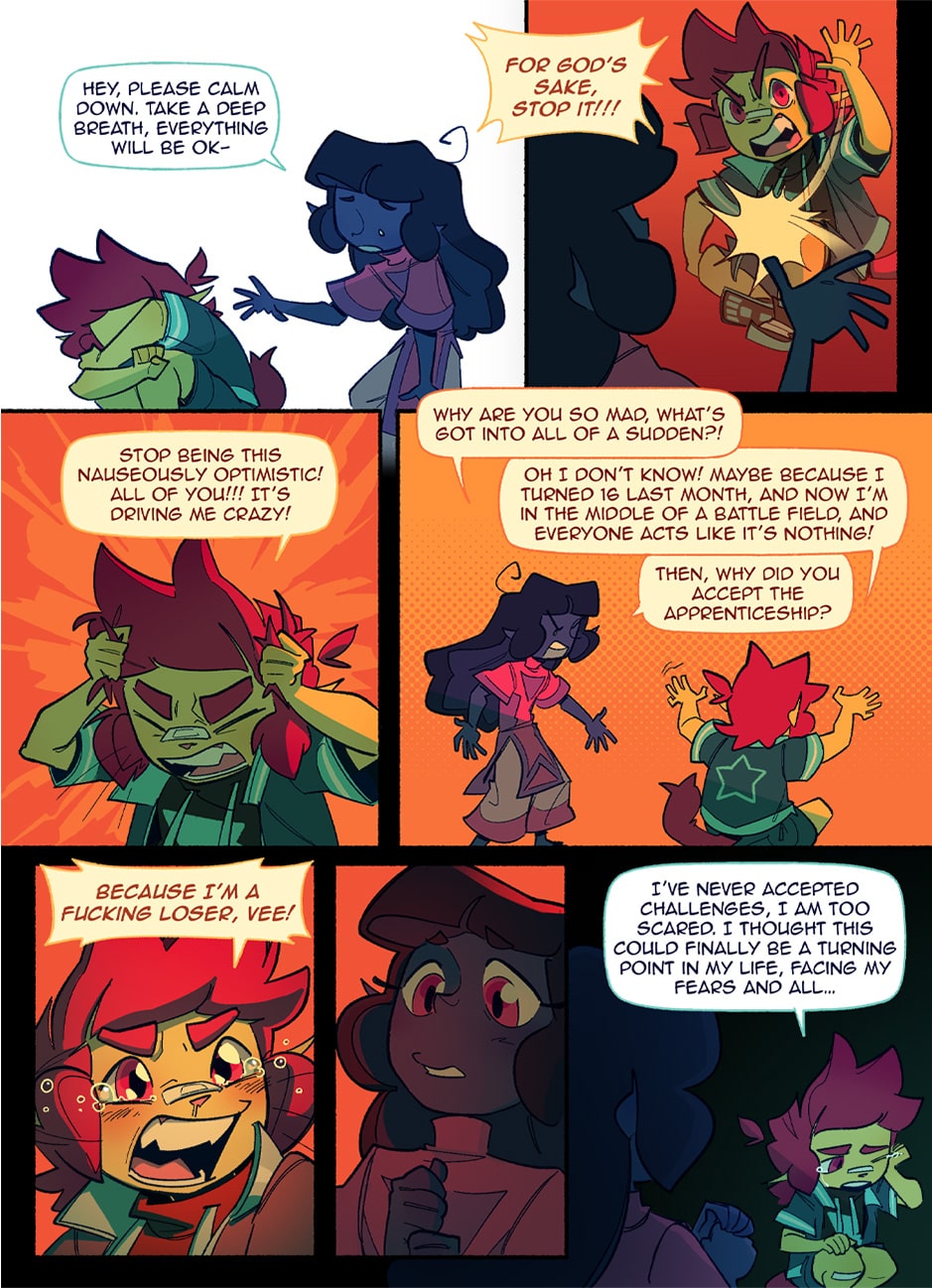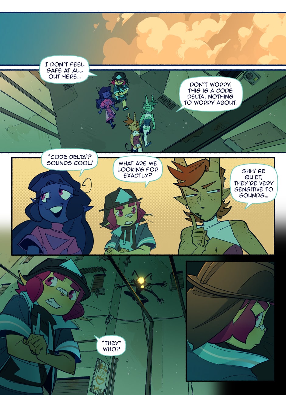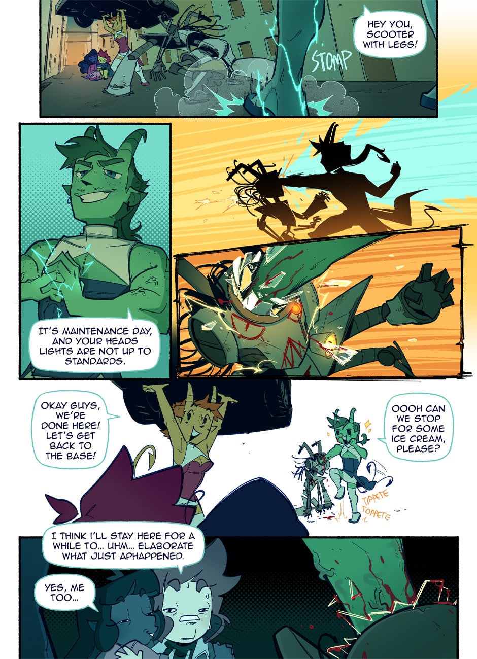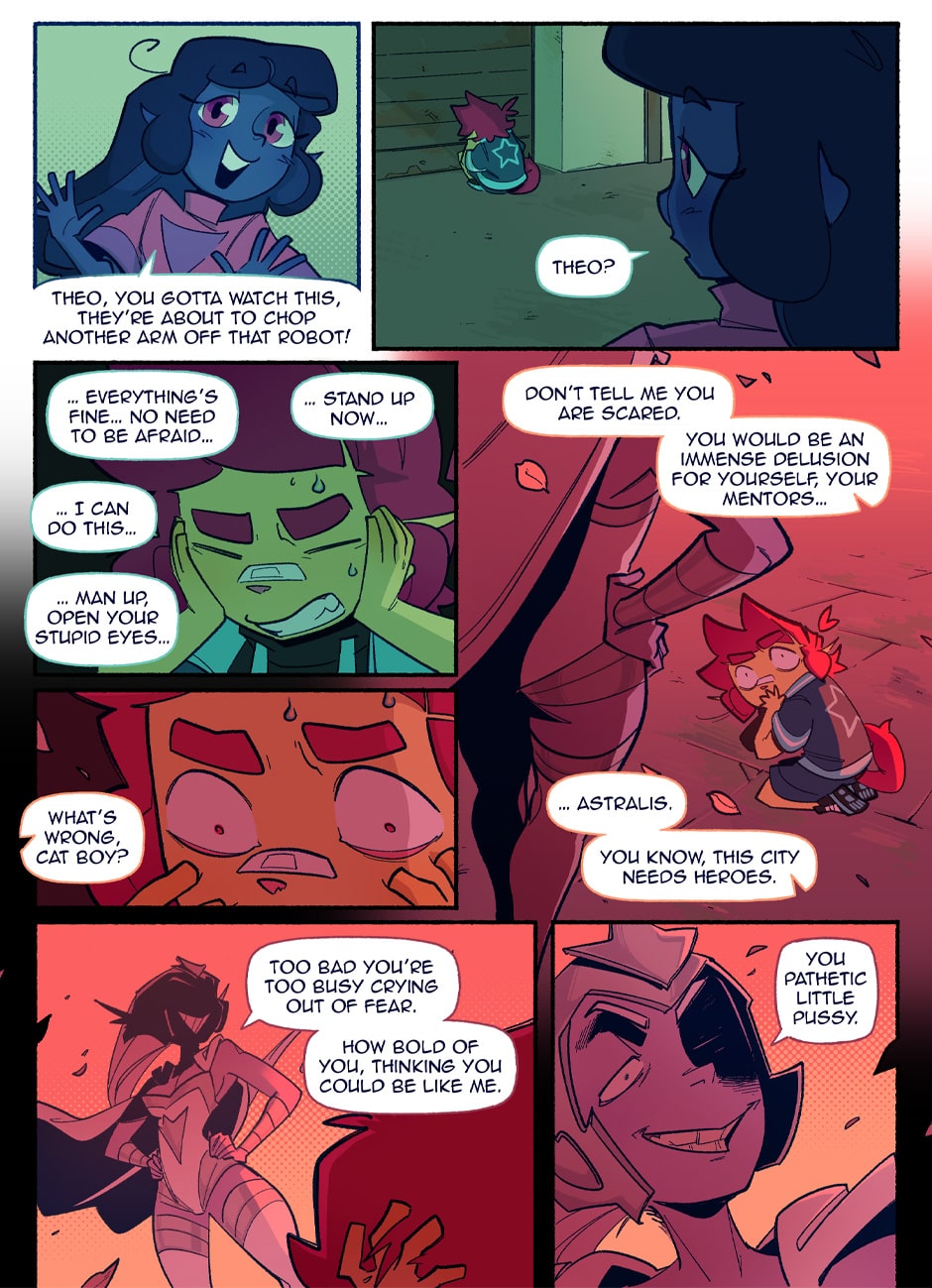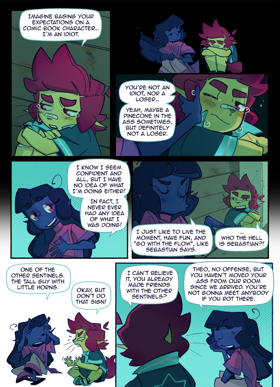In a world where pride flags are worn as capes to fight for justice, Theo and Vee are two young novices ready to start their training to become professional sentinels. But every rookie needs a mentor, and who better to show them the ropes than the most catastrophically dysfunctional sentinels in the entire city? BE GAY, FIGHT CRIME!!!