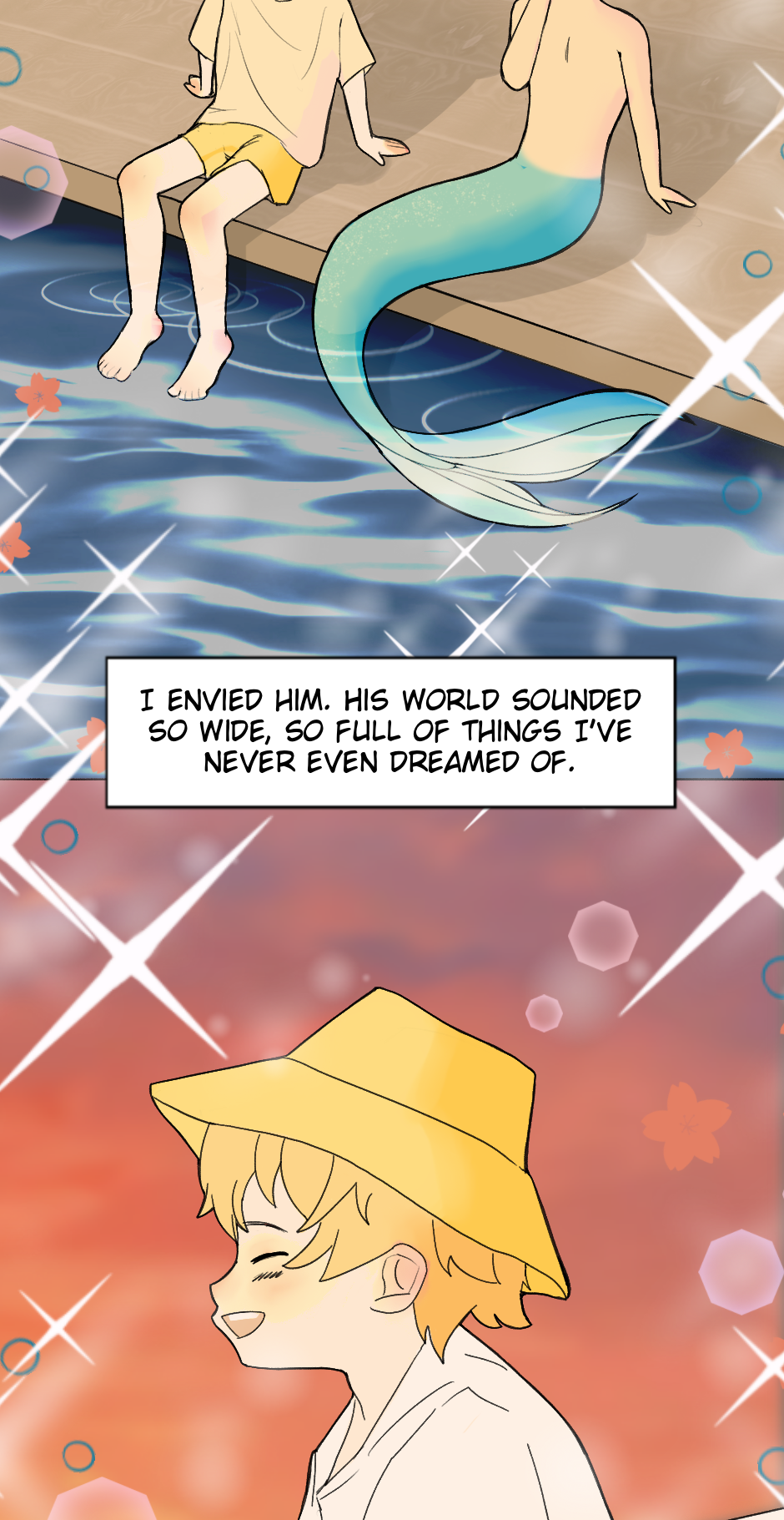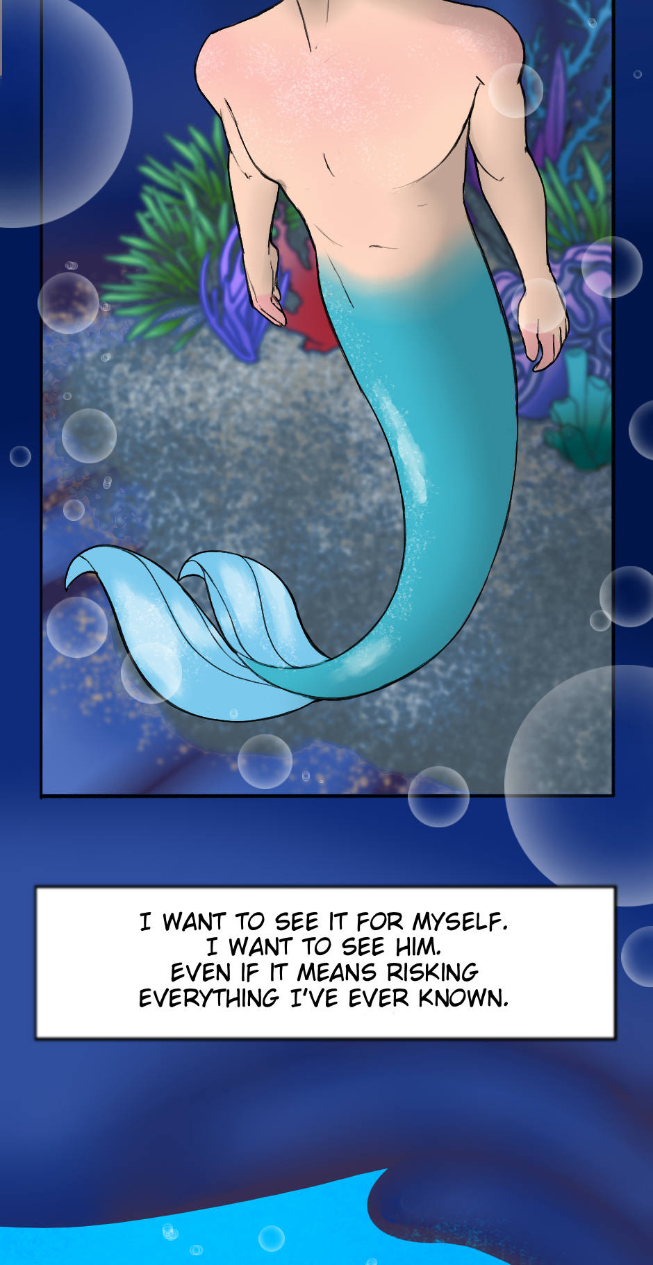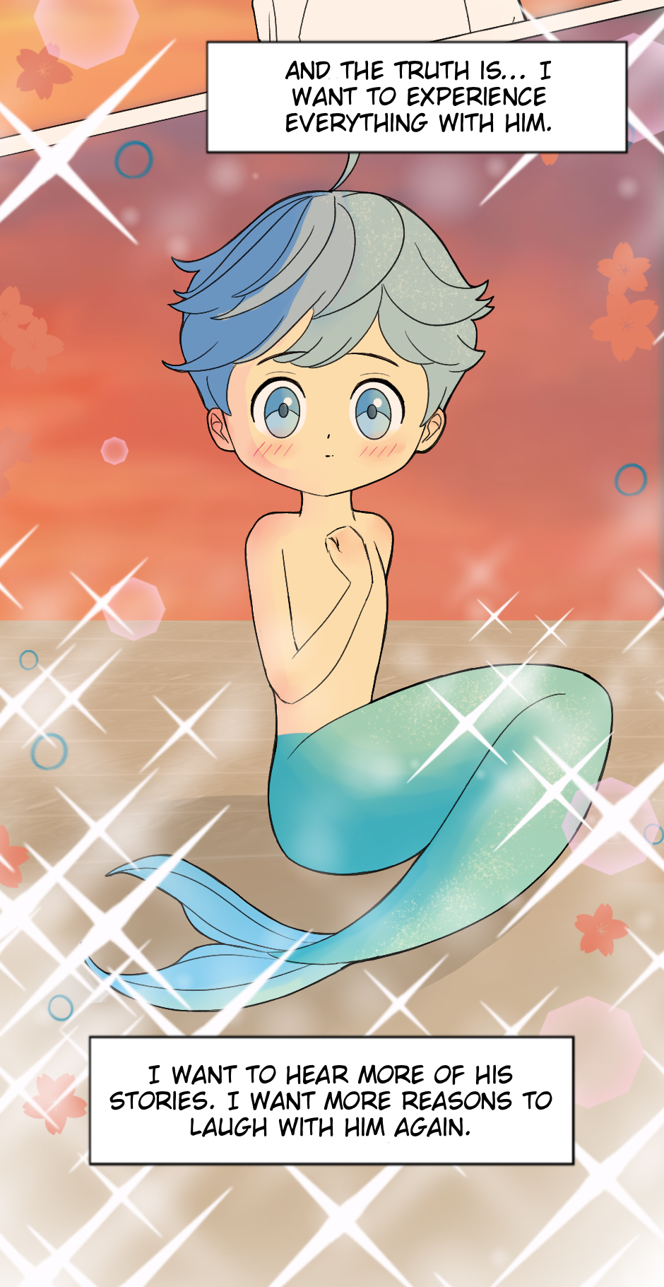 A long time ago, a curious merman boy name kai got trapped by a strange human object and was pulled to the surface—there, a human boy on a boat noticed him and rushed to help. That short moment left a deep mark on the merman’s heart. Since then, he returned to the same spot every year, hoping to see him again. Now, fifteen years later, the memory has turned into something more, and he finally decides to leave the ocean behind and search the human world for the boy who once made his heart flutter. But after all this time, will that boy even remember him?