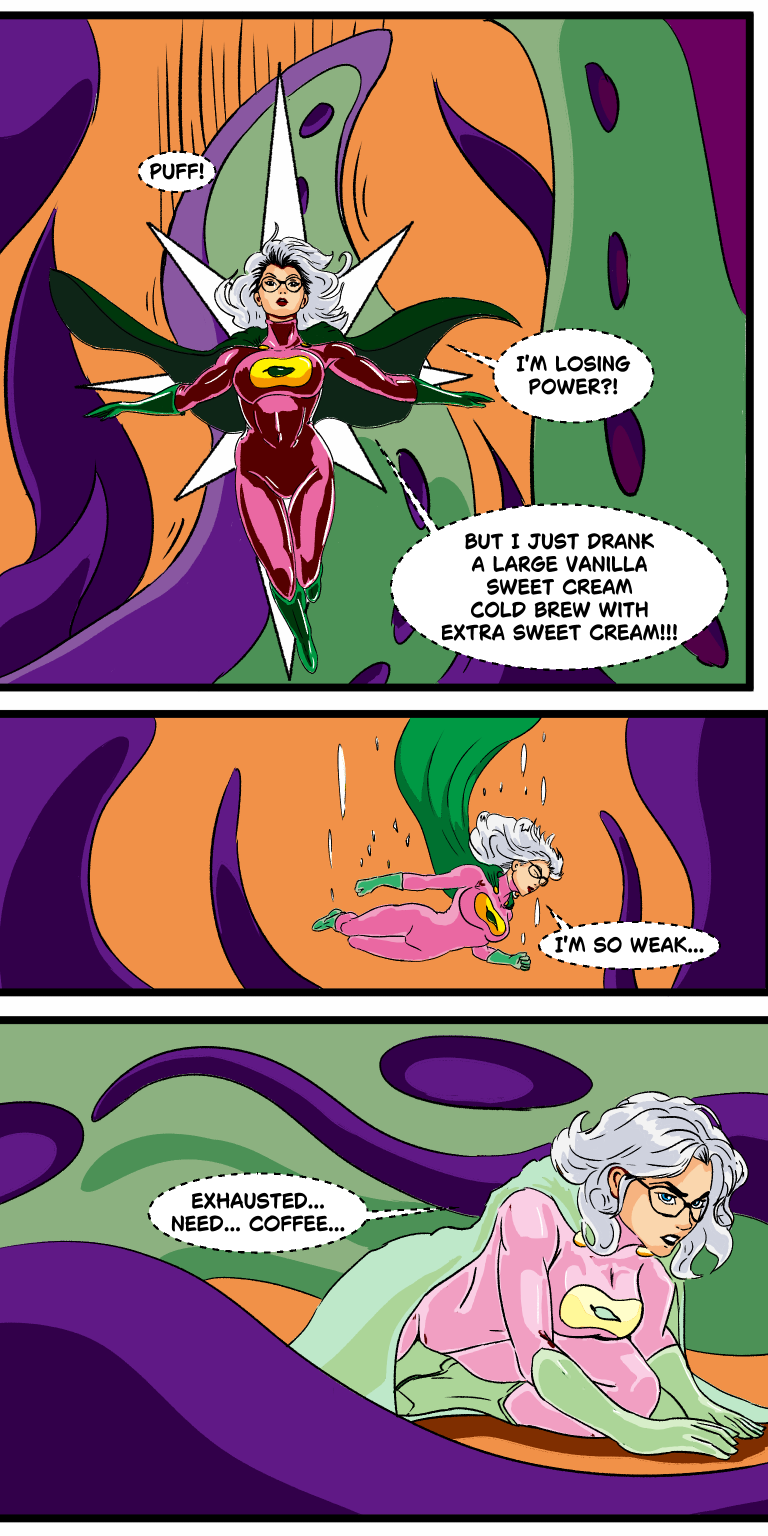 But a darker threat looms. The sinister Pale Face, ever the mastermind, hatches a diabolical scheme to sap Captain Jalapeño’s powers by tainting her beloved vanilla sweet cream cold brew with decaf. As the stakes skyrocket, Glabrous Man’s wit and Jalapeño’s caffeine-charged fury are pushed to their limits. Can they uncover Pale Face’s plot and restore the brew before Oklahoma falls? Dive into this pulse-pounding comic series, where epic battles, shocking revelations, and a steaming cup of courage collide!