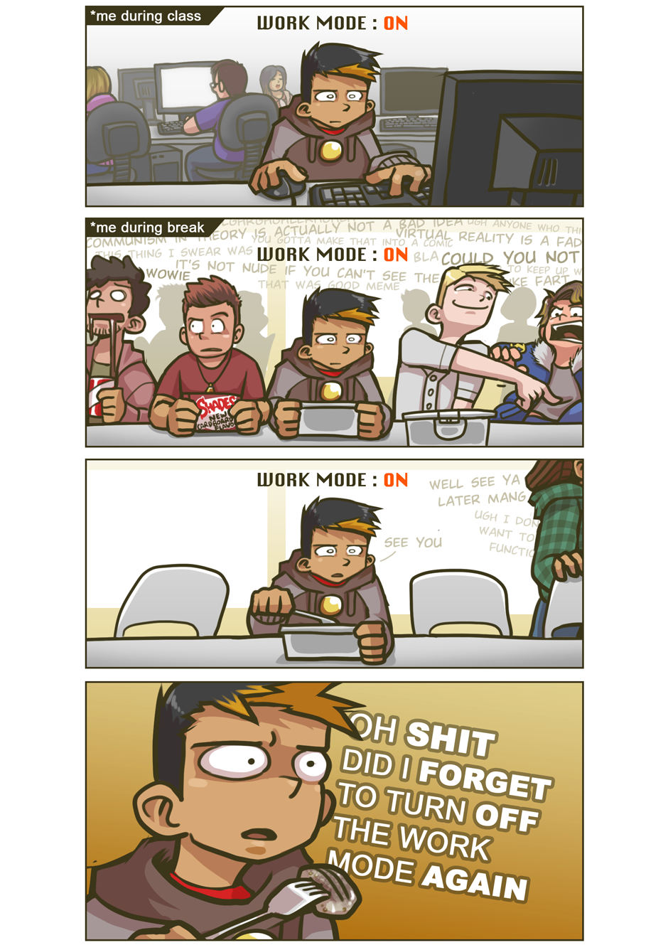"Work mode" is actually just an excuse for being socially awkward, guess what I don't actually have an off button h a h a
