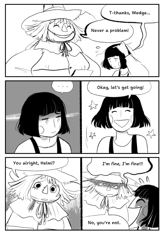These comics are mostly an excuse to draw characters exploring different settings and interacting with each other. I hope you enjoy them, too. There will be dark themes like death, mental illness and, as the title suggests, trauma, so please tread carefully.