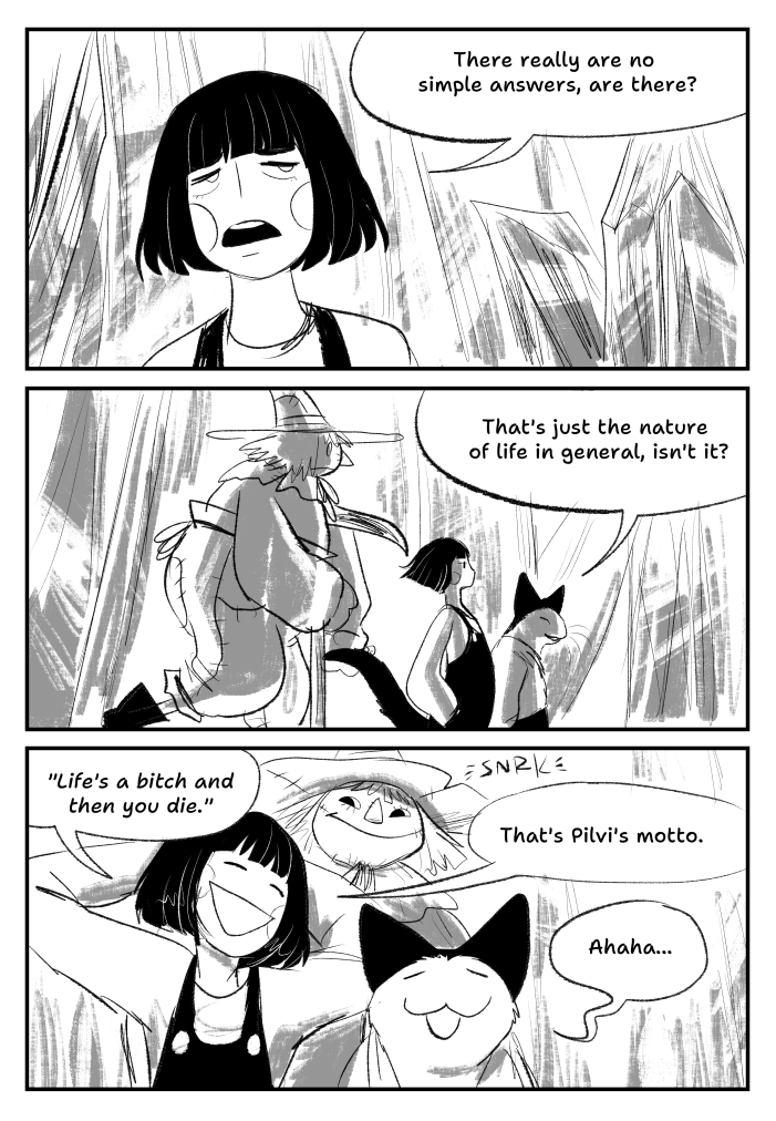 These comics are mostly an excuse to draw characters exploring different settings and interacting with each other. I hope you enjoy them, too. There will be dark themes like death, mental illness and, as the title suggests, trauma, so please tread carefully.