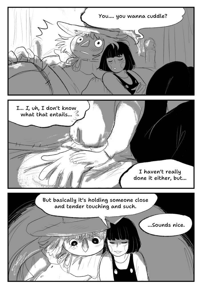These comics are mostly an excuse to draw characters exploring different settings and interacting with each other. I hope you enjoy them, too. There will be dark themes like death, mental illness and, as the title suggests, trauma, so please tread carefully.