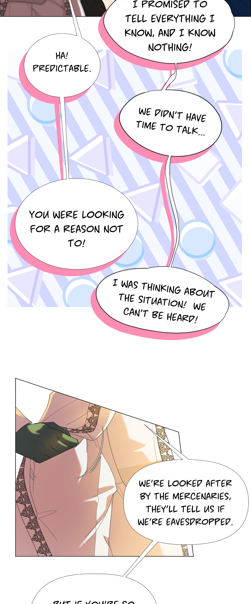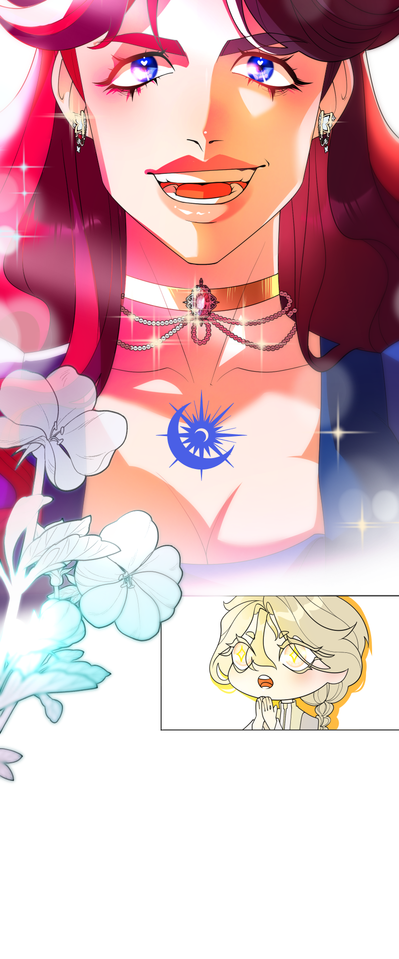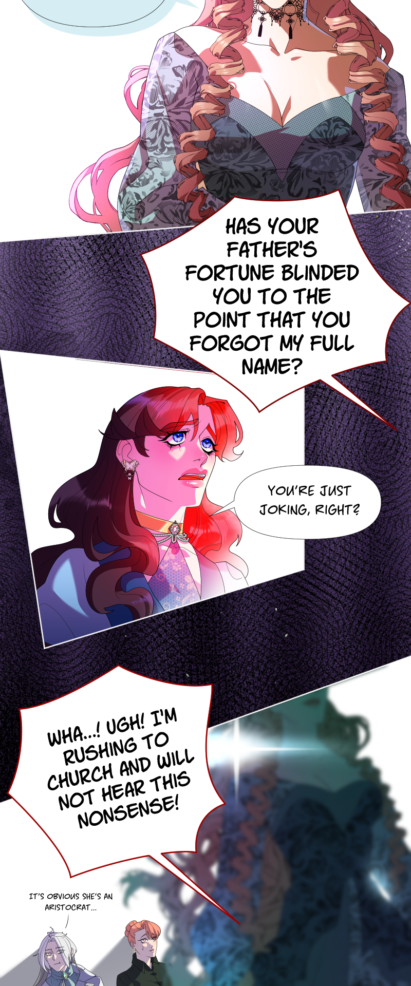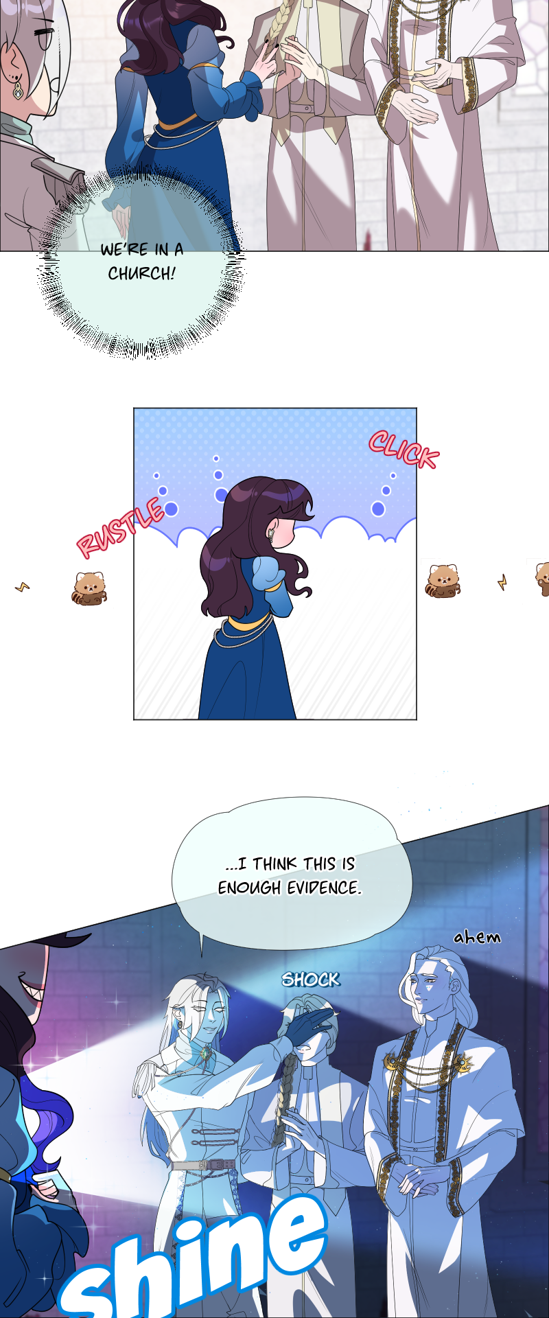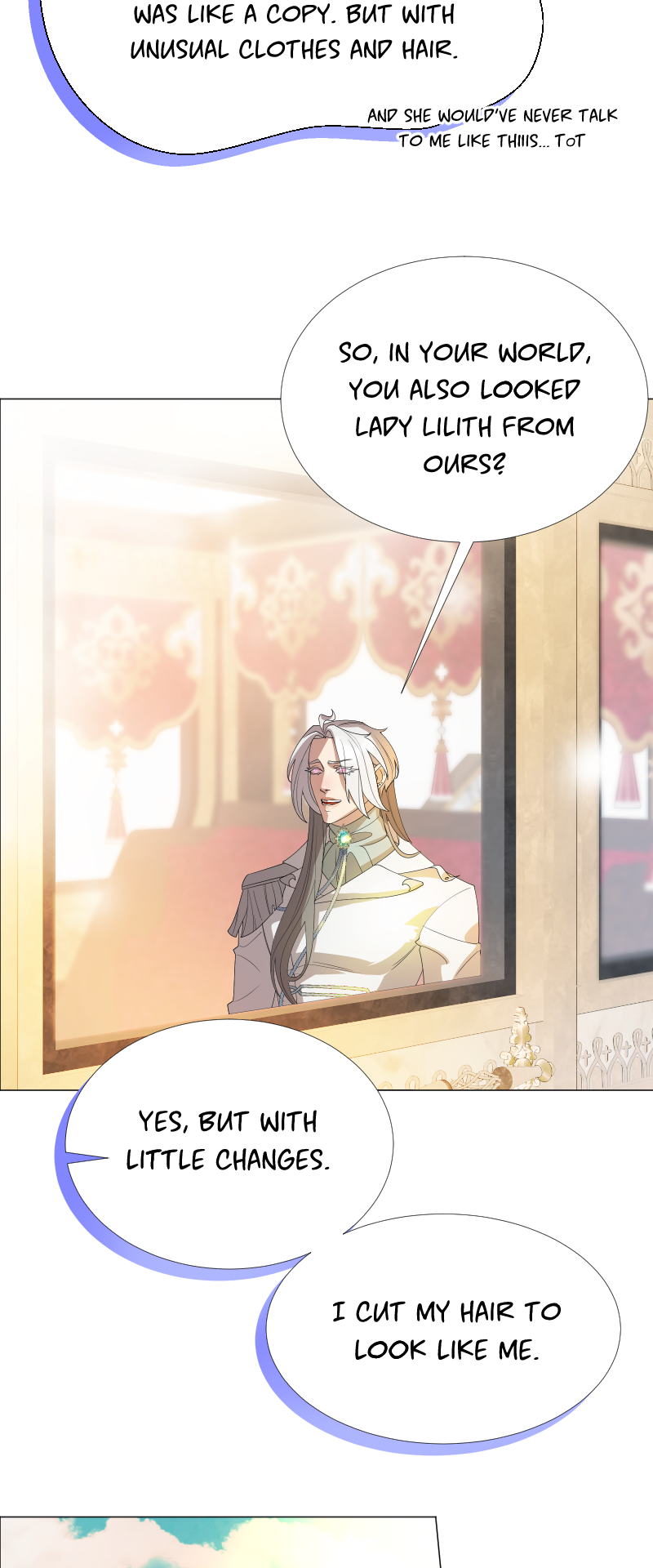 Lilith: "I read a short story about a princess. Is that corny? Yes, it was. Guess what happened next...I woke up with a dagger to my neck. The prince is plotting against me, and the church is happy to have a new saint. I'm facing death and..."