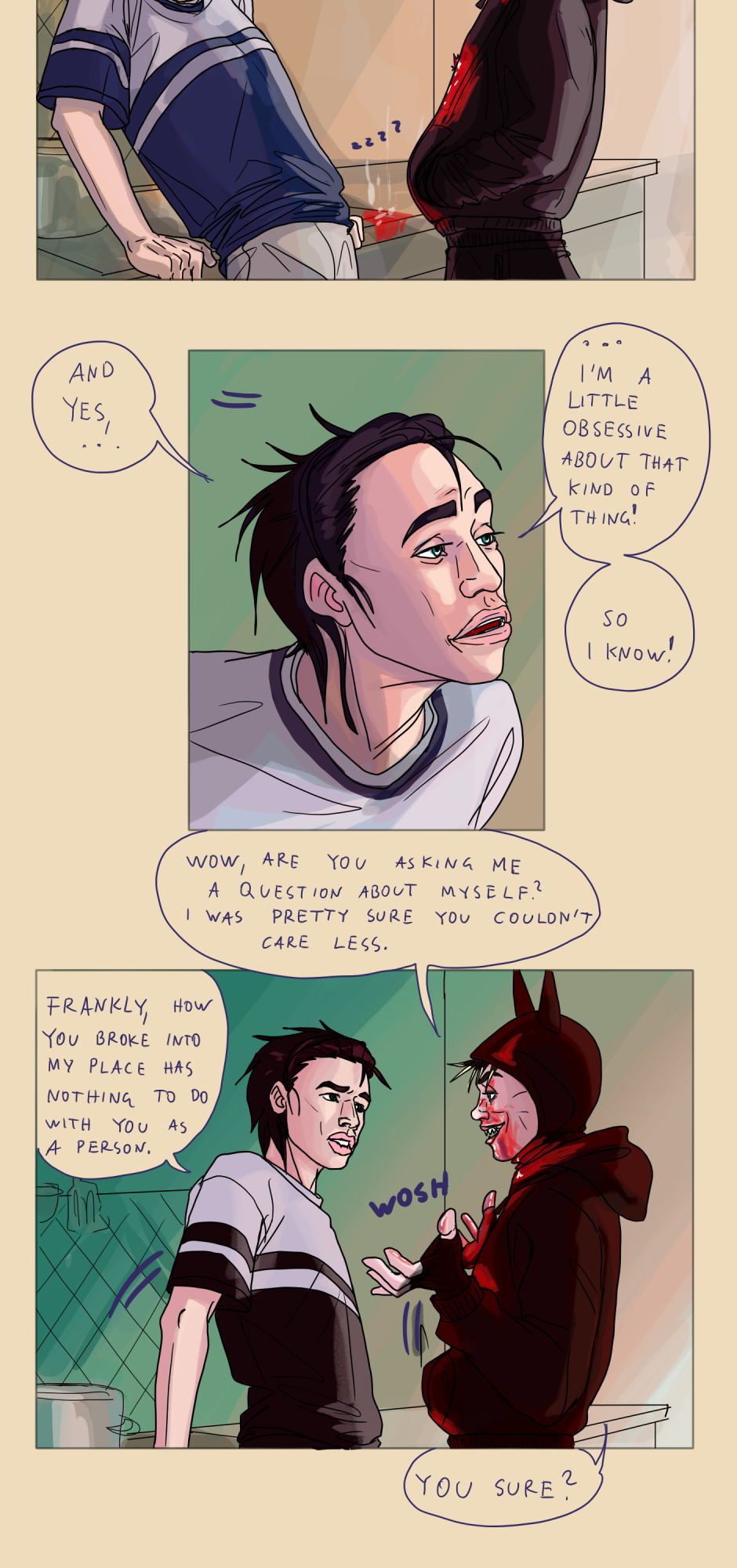 A queer slice-of-life comic with a supernatural (and slightly criminal) twist. Welcome to a slightly off-kilter version of Vienna (Austria), where Steve is just trying to survive his next social encounter, thinking that's his biggest problem—until he meets an unusual criminal who turns his whole life upside down. !UPDATES every Thursday and Sunday!