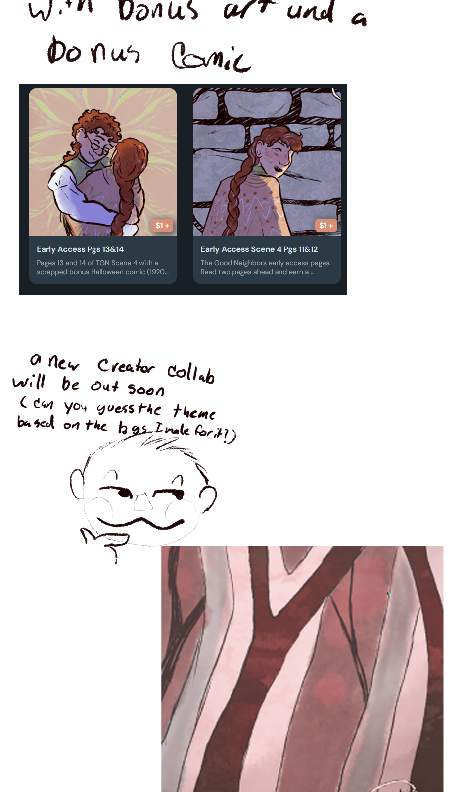 Join the discord! All early access members have access to a channel for early access discussions and they get comic page wips ! https://discord.gg/rD67cWv86k