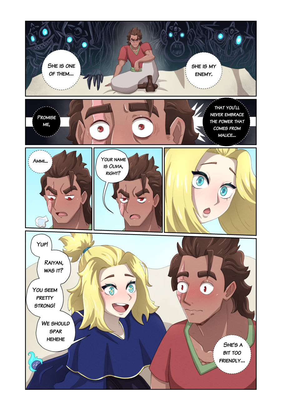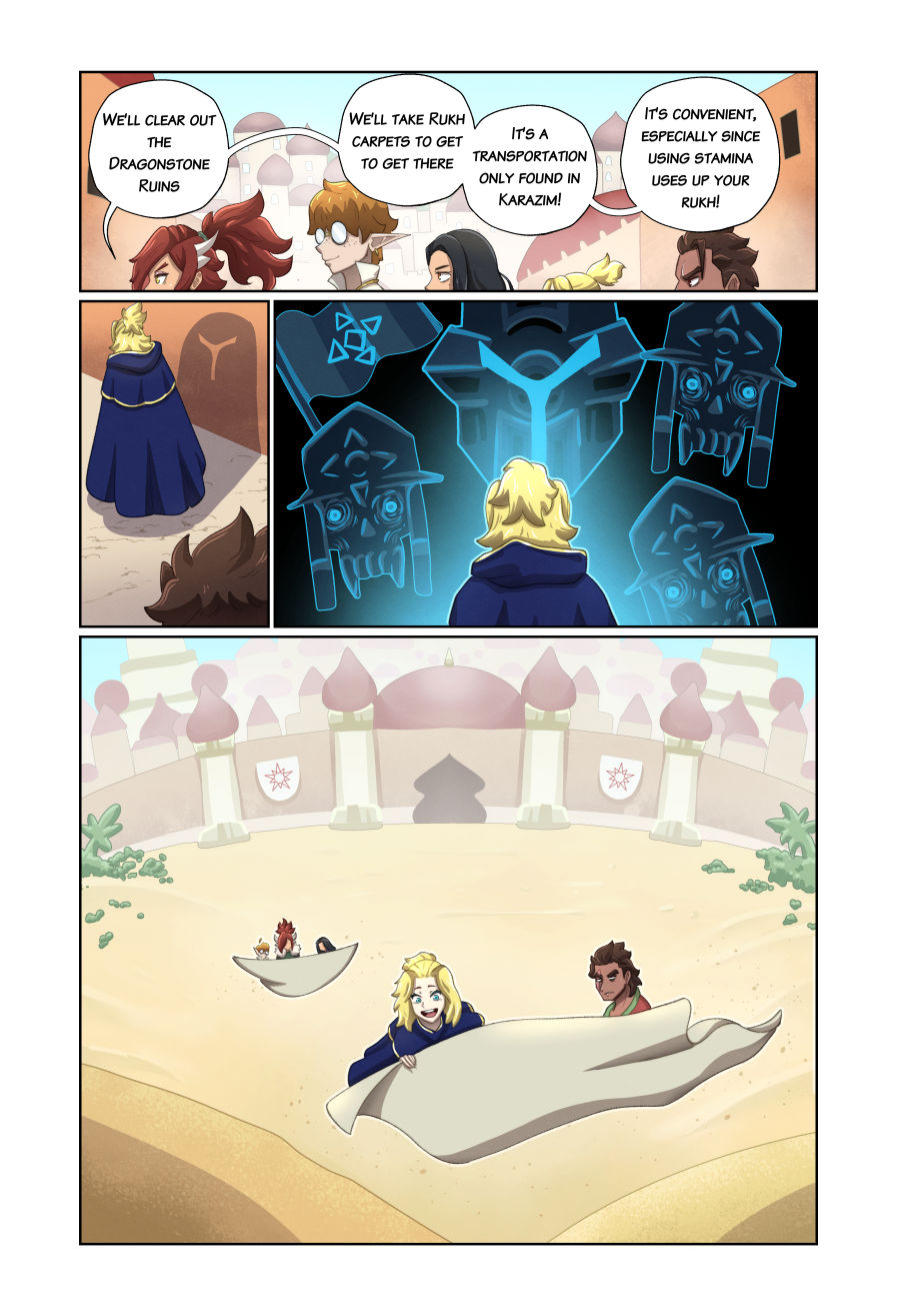 Raiyan, a young miner, enjoys a simple and peaceful life alongside his parents. However, once a colonial empire attacks his homeland, he has no choice but to flee across the sea. There Raiyan finds himself in the mystical city of Karazim, where magic and learning reign supreme. Updates every other week. Read pages as they're released at https://karazim-comic.com/