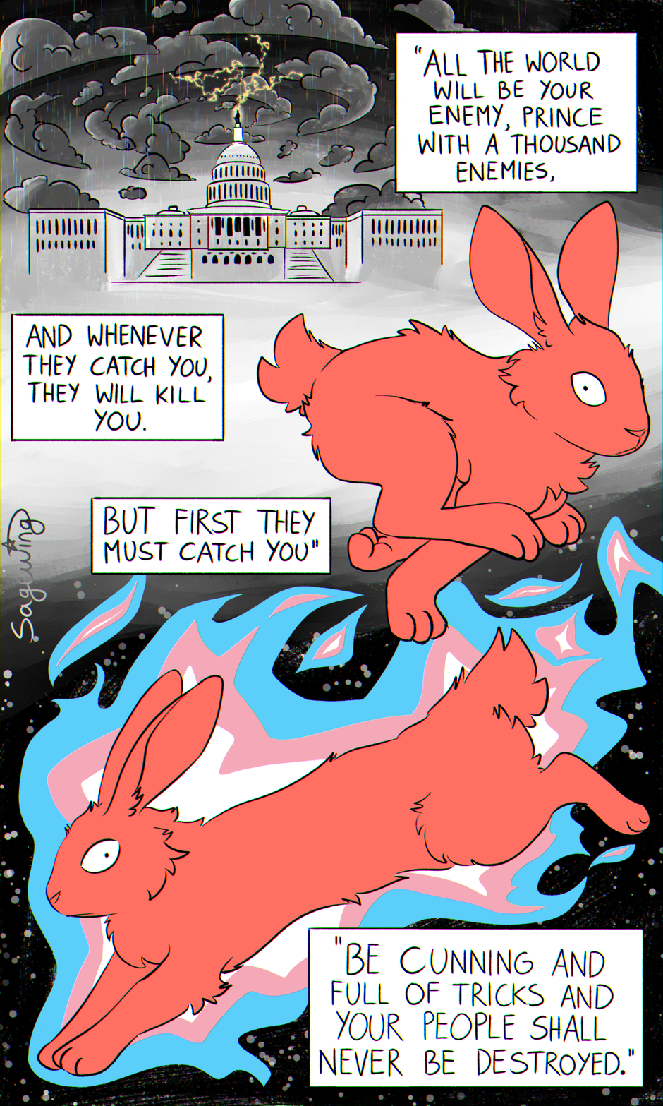 Thing about queer survival. Quotes on the second page are from Watership Down.