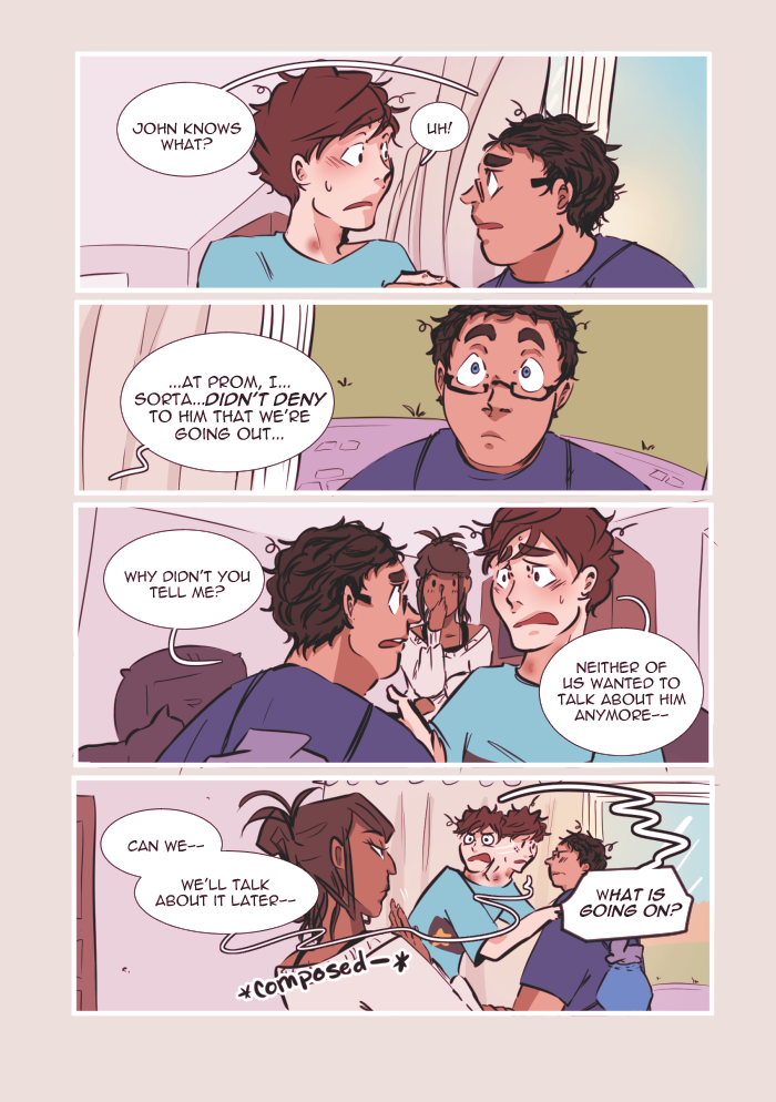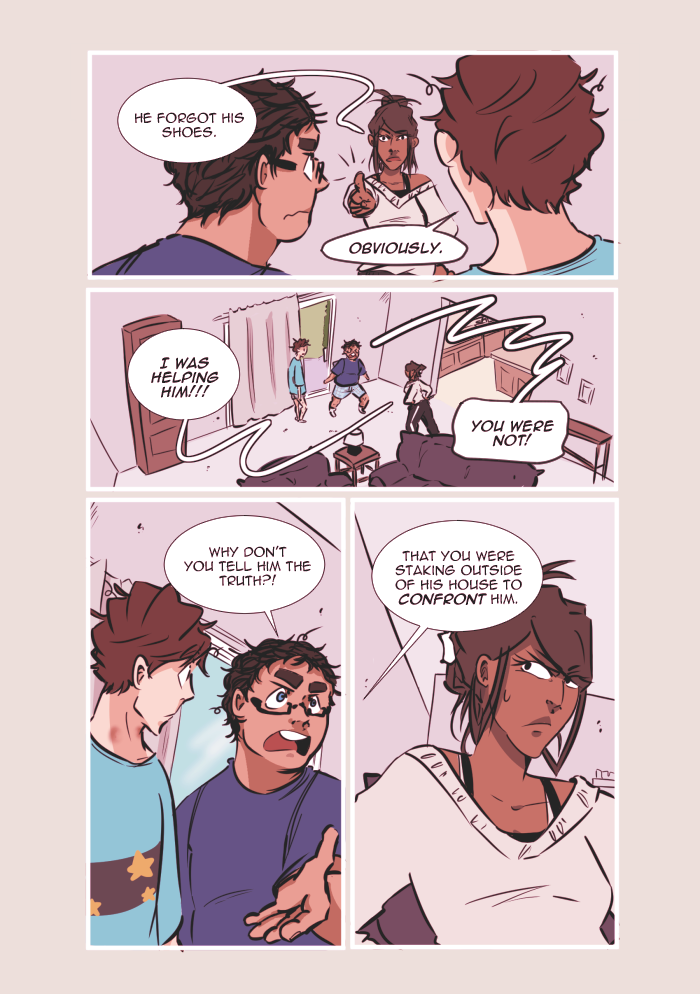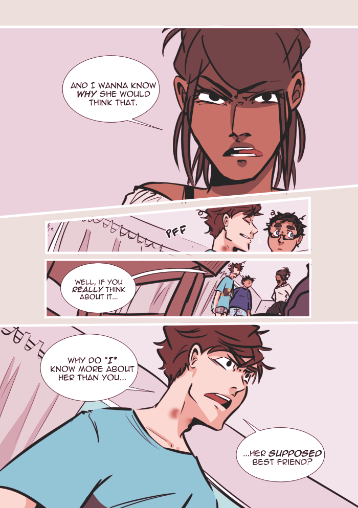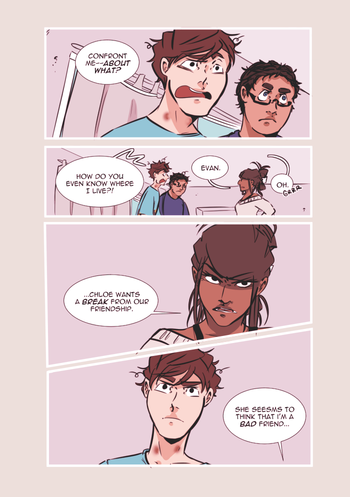 Content warnings: profanity, innuendos and characters talking about sex, some references to underage drinking, discussion of bullying/self-harm/substance abuse/alcoholism/mental illness, and the graphic representation of anxiety/panic attacks. Other topics include death, emotional/verbal abuse, and therapy.