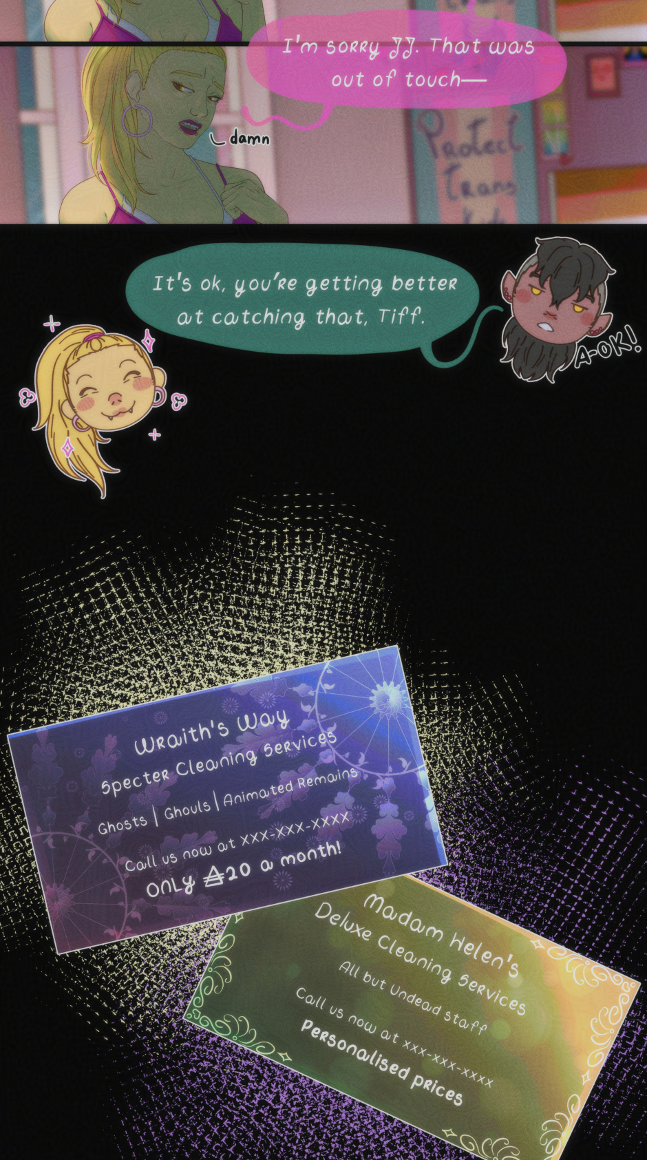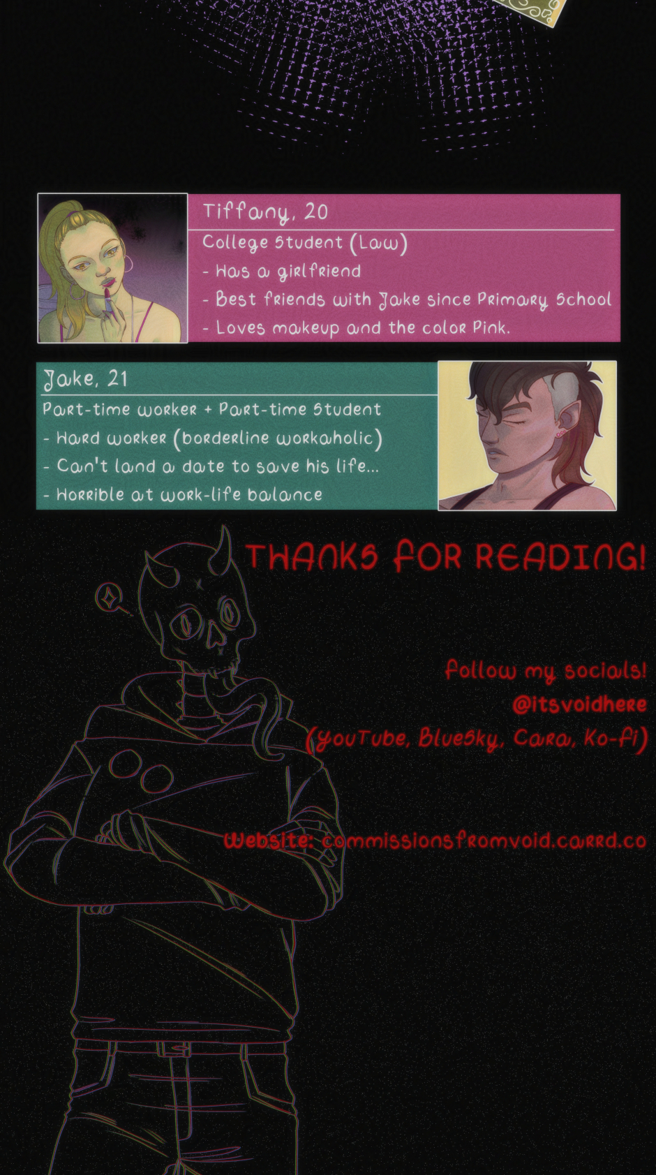 I enjoyed drawing them both, I have more stuff written about them for future chapters and I can say that these two are very fun together!
