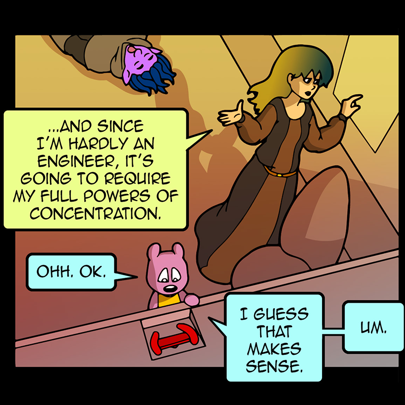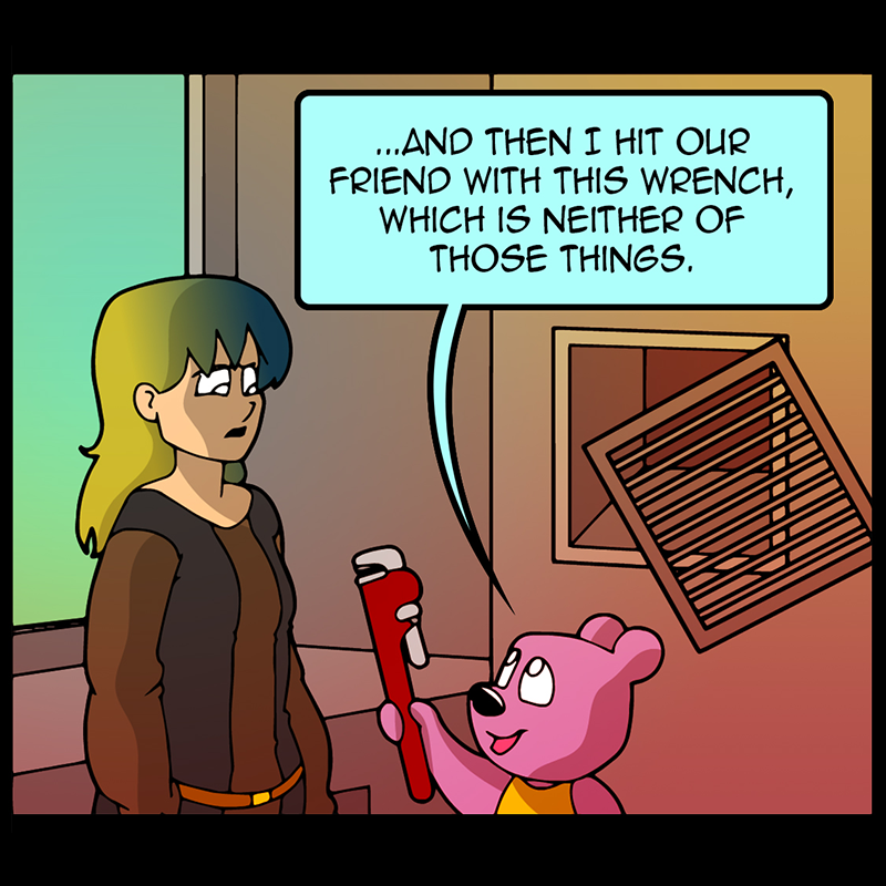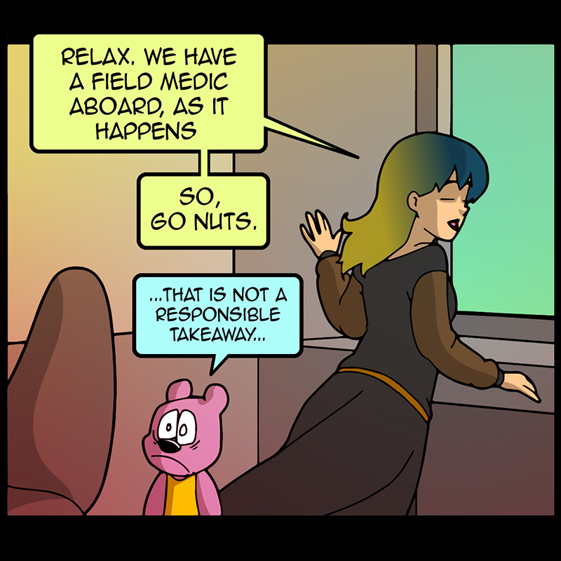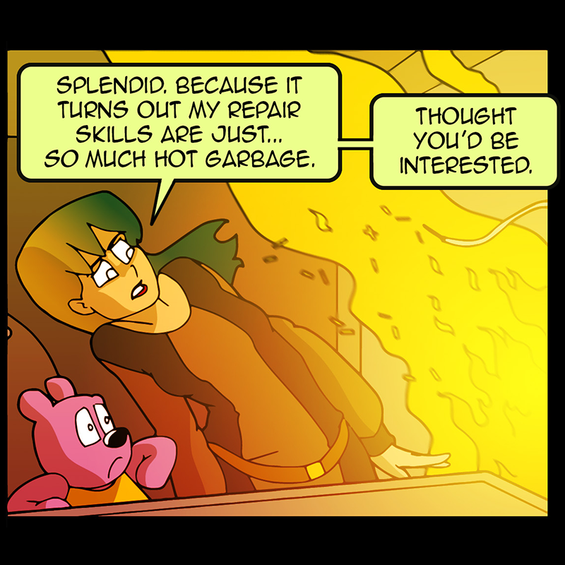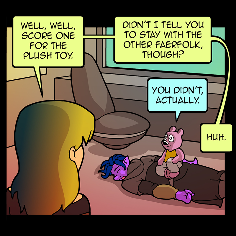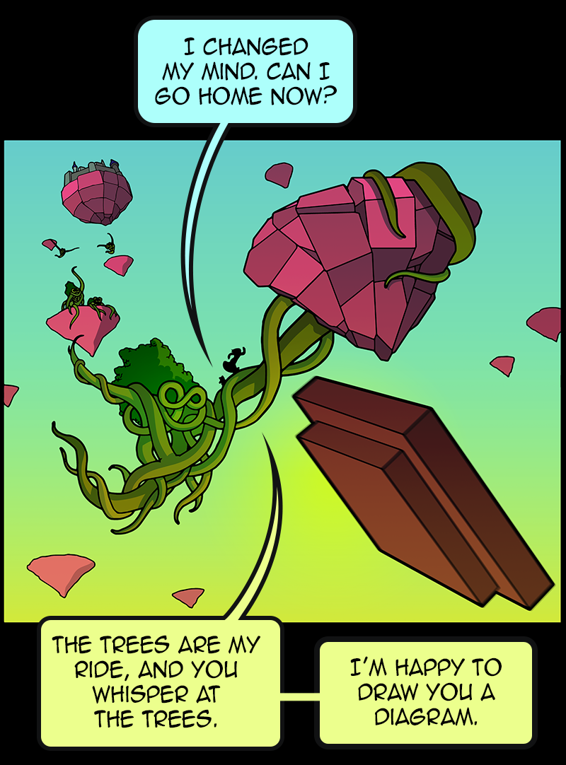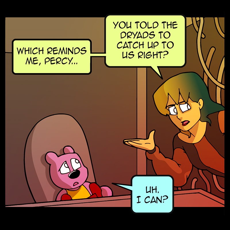 In a vast and war-torn sky realm, a desperate warlord summons a horde of powerful tree creatures, with hopes of bringing the wars to a close ( in her favor). She soon learns that said tree creatures have been accompanied by a small, do-gooder, stuffed bear ... who also happens to be the trees' translator. Hijinks ensue.