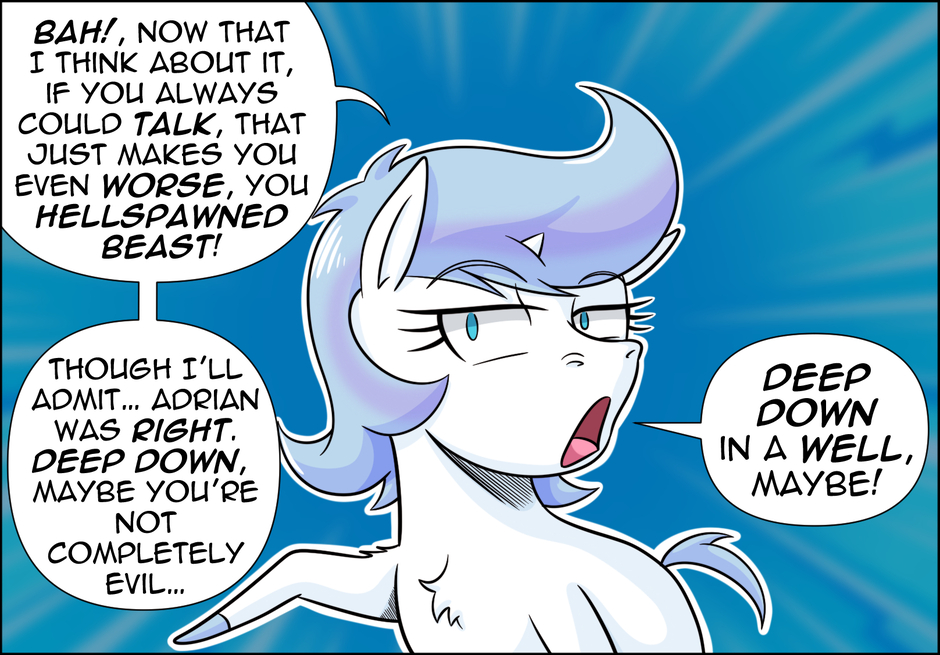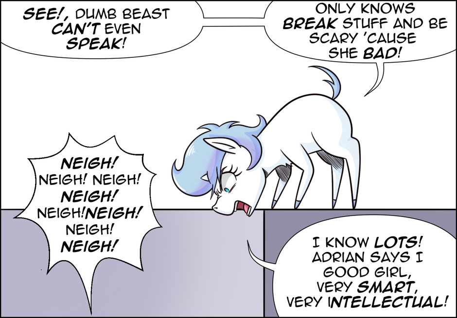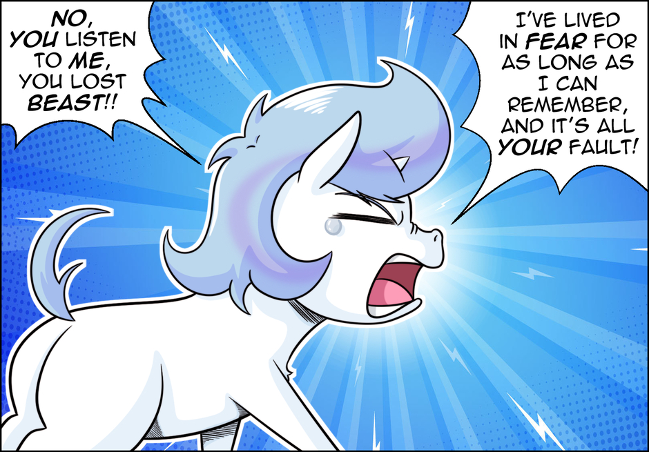The little one awakens a courage and strength she never thought she had. At last, she stands against the Beast… but for someone who understands the true weight of words, she doesn’t seem too willing to use them when facing the one she sees only as an enemy.