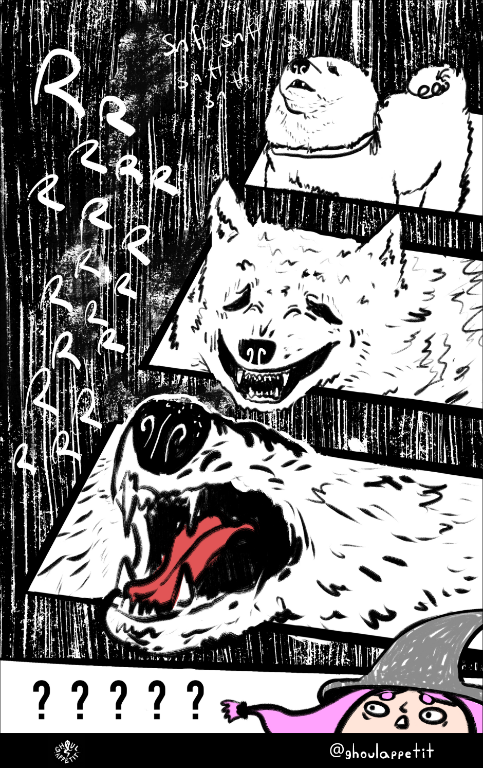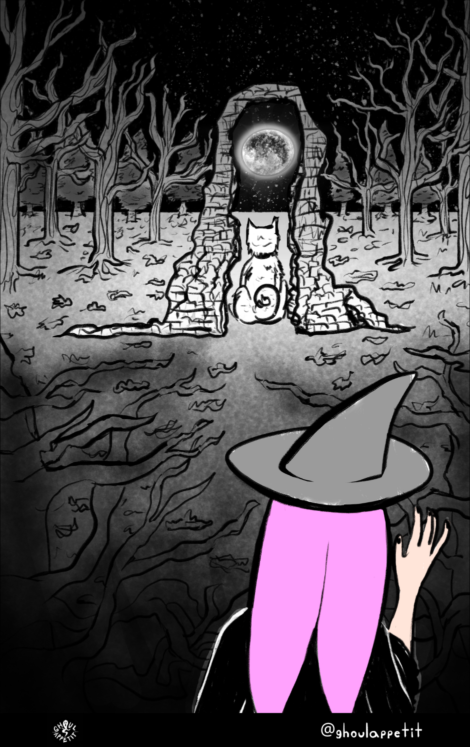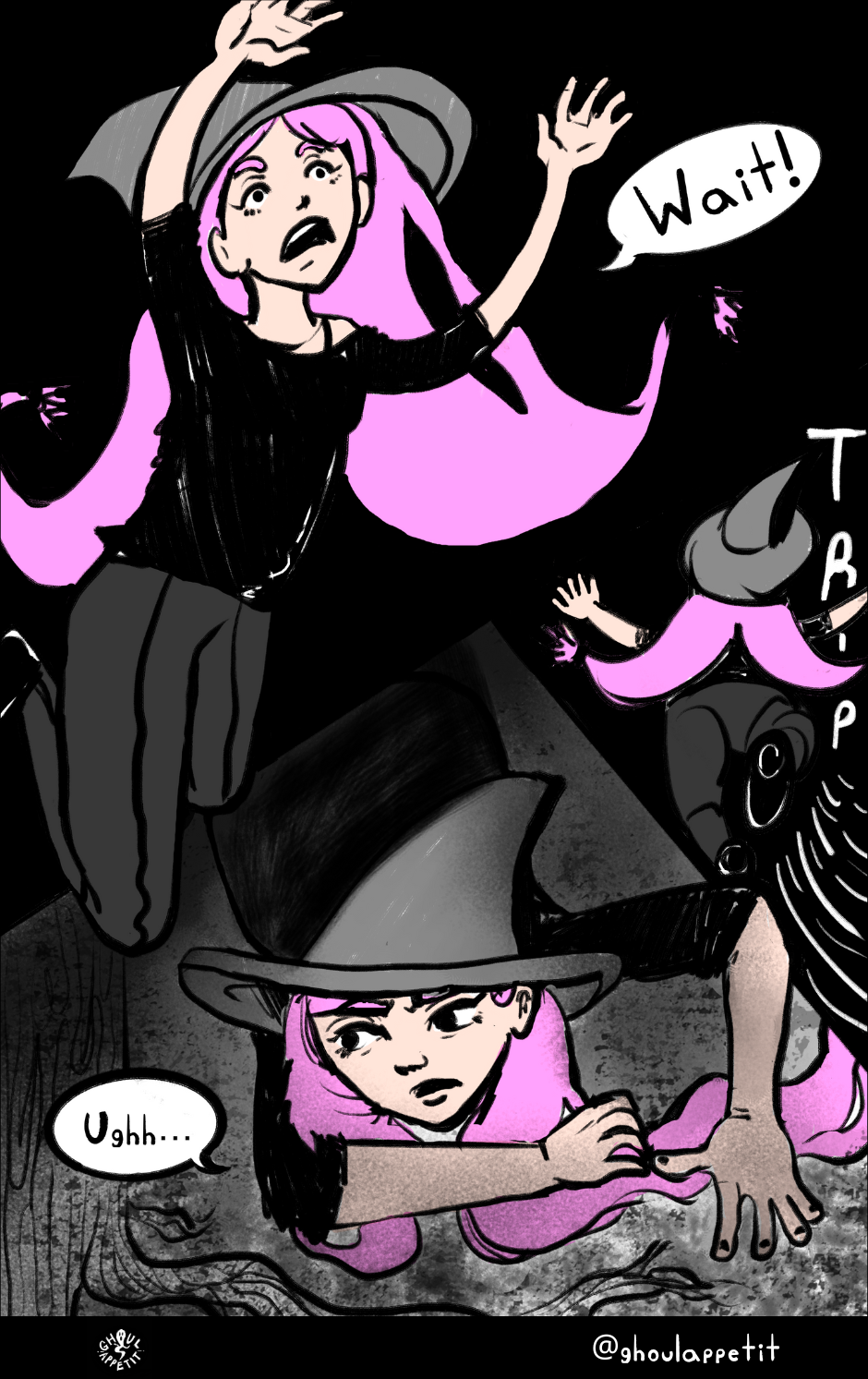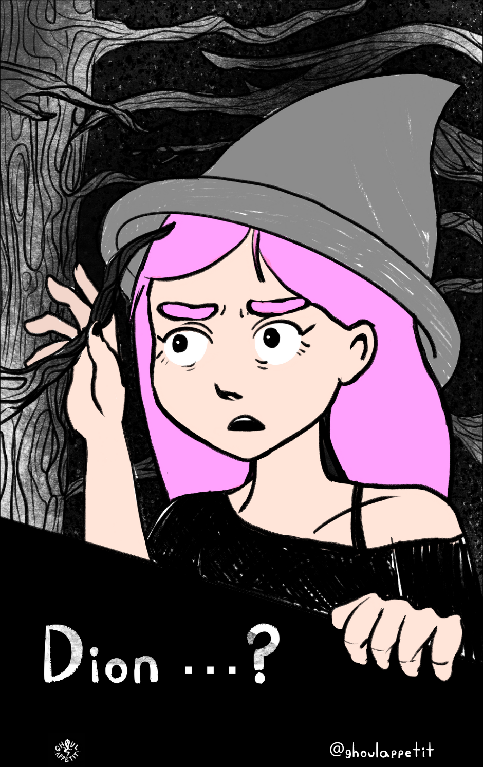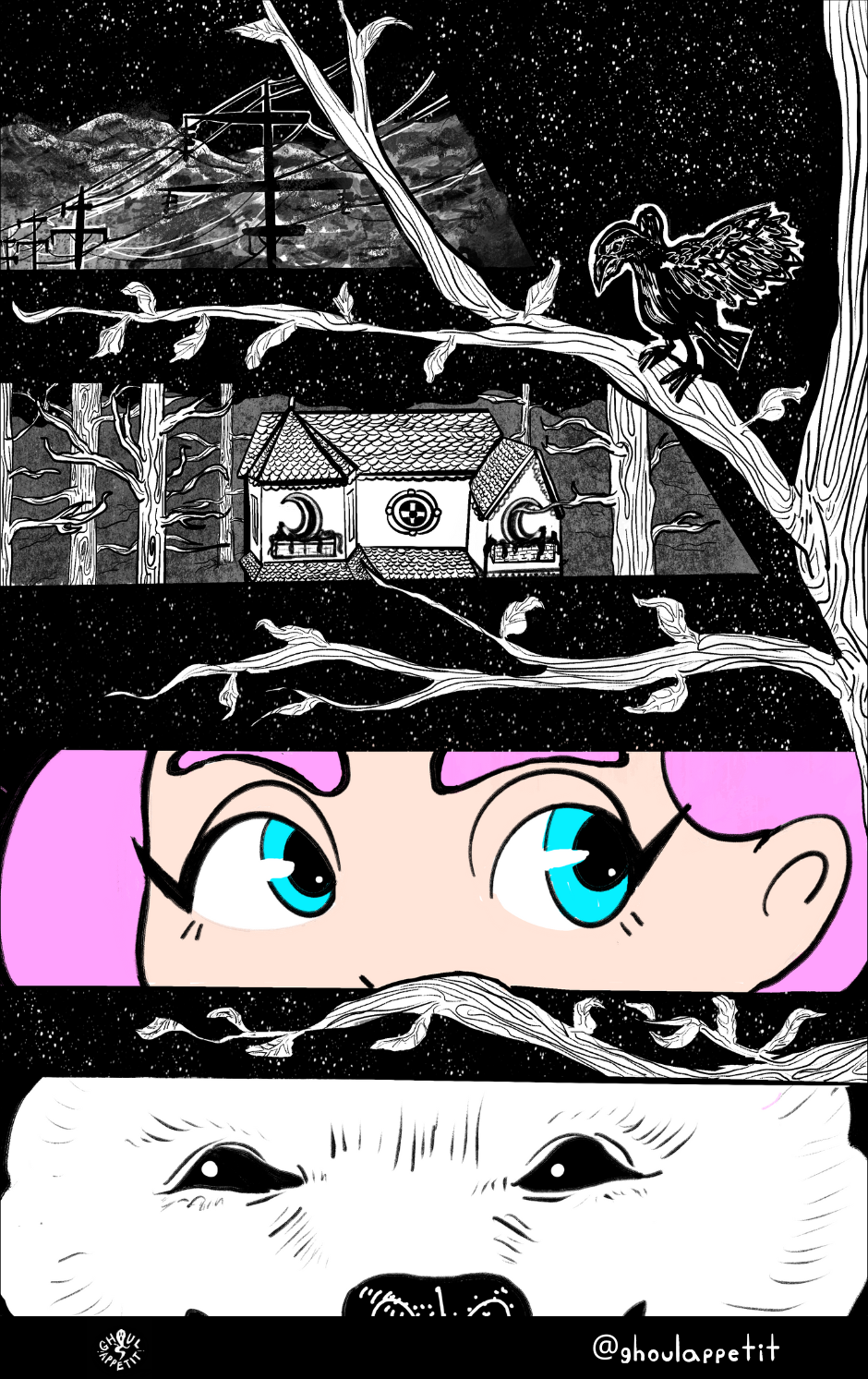 Ghoul Appétit! is a "slice of magical life" story that is an angsty, goofy, and witchy coming-of-age webcomic that seeks to reflect on how food can be a means of self-understanding and connection with others.