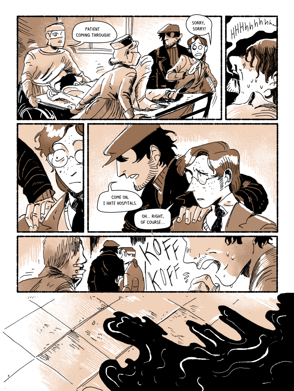 Kingfisher is an 1920s occult mystery series about wannabe scholar Seymour and his friend/roommate/bodyguard Gabriel trying to survive in a strange city while deciphering the secrets of an even stranger puzzle, the Kingfisher Box. Together, they hunt thieves, dodge the police, and look too close into the unknown while navigating their relationship with each other.