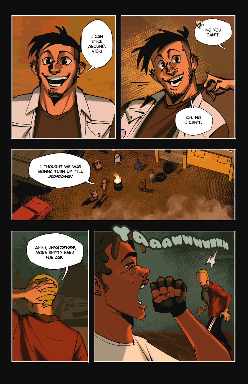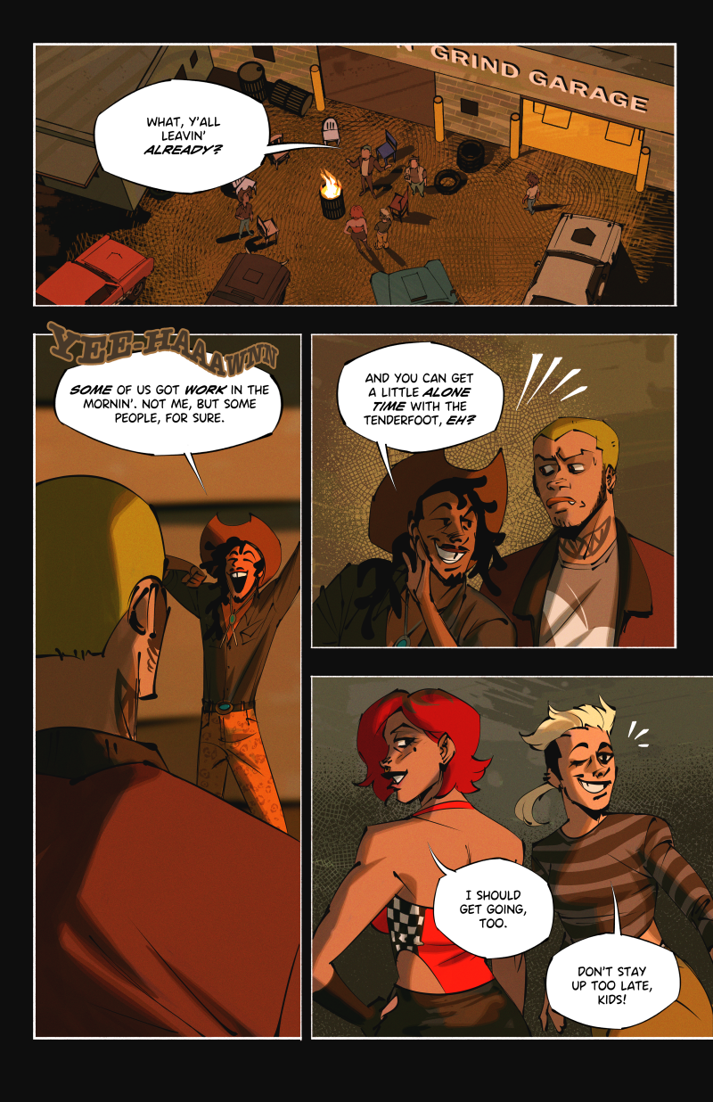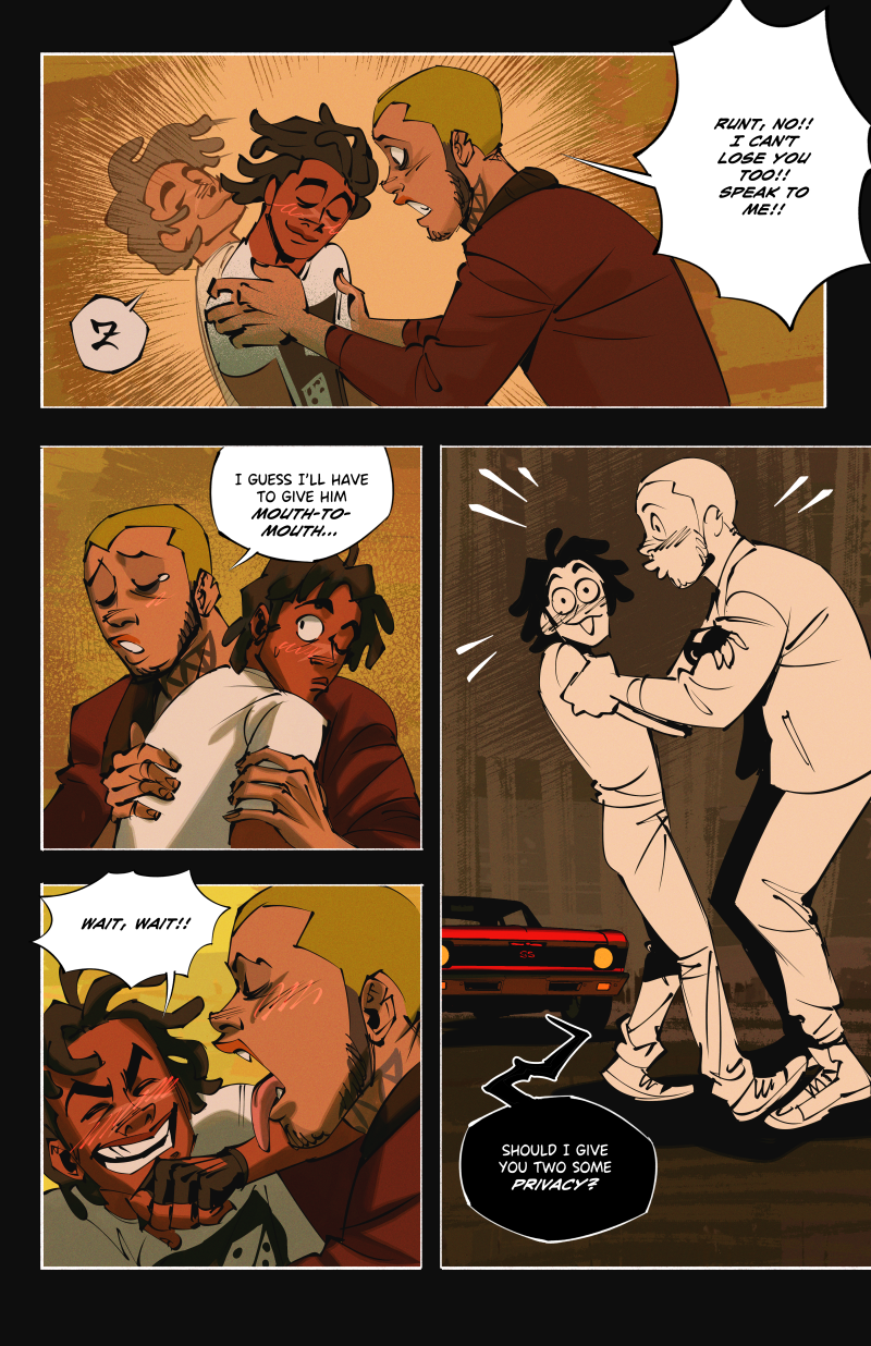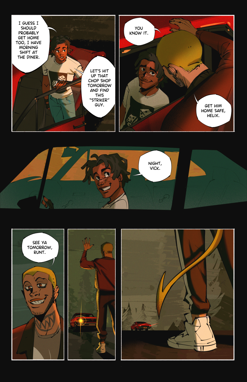 Ride or Die is an LGBTQ webcomic about two street racers who team up with a demon-possessed muscle car in the search for a missing woman, while being hunted by a deadly religious cult.