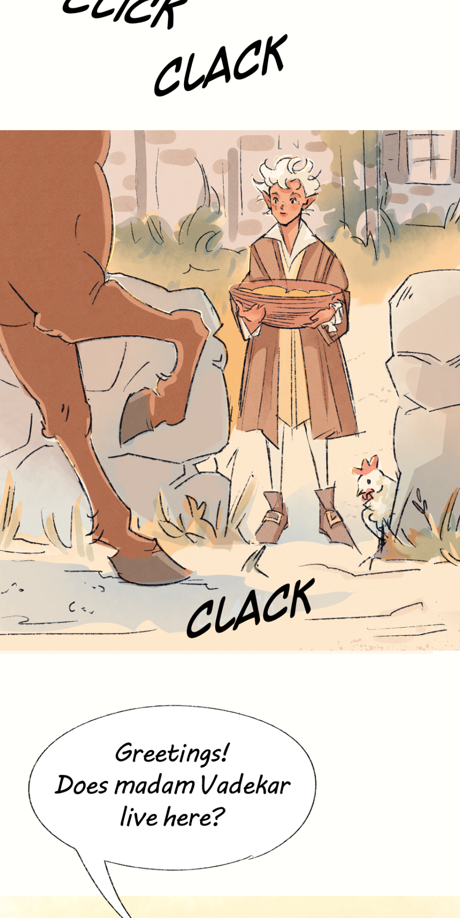The messenger arrives at her destination! (Guys, how do we feel about the different font? Should I stick with it or do you prefer the previous one?)