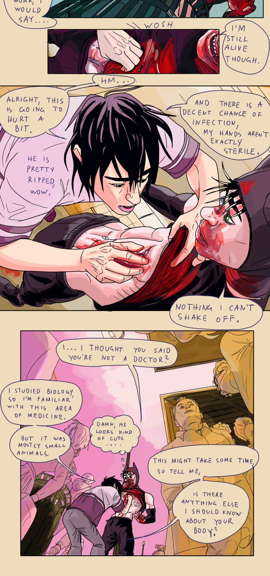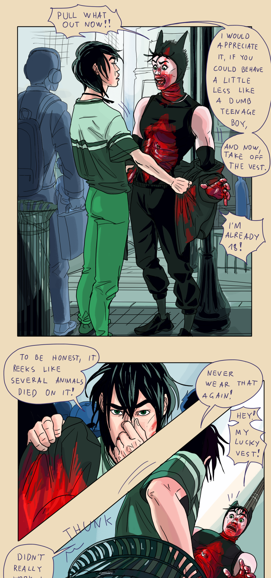 A queer slice-of-life comic with a supernatural (and slightly criminal) twist. Welcome to a slightly off-kilter version of Vienna (Austria), where Steve is just trying to survive his next social encounter, thinking that's his biggest problem—until he meets an unusual criminal who turns his whole life upside down. !UPDATES every Thursday and Sunday!