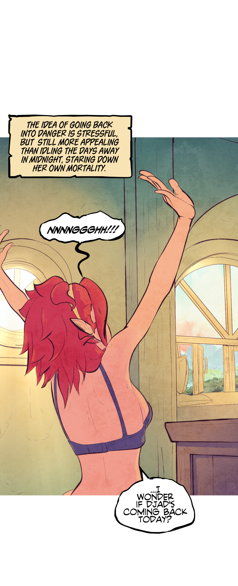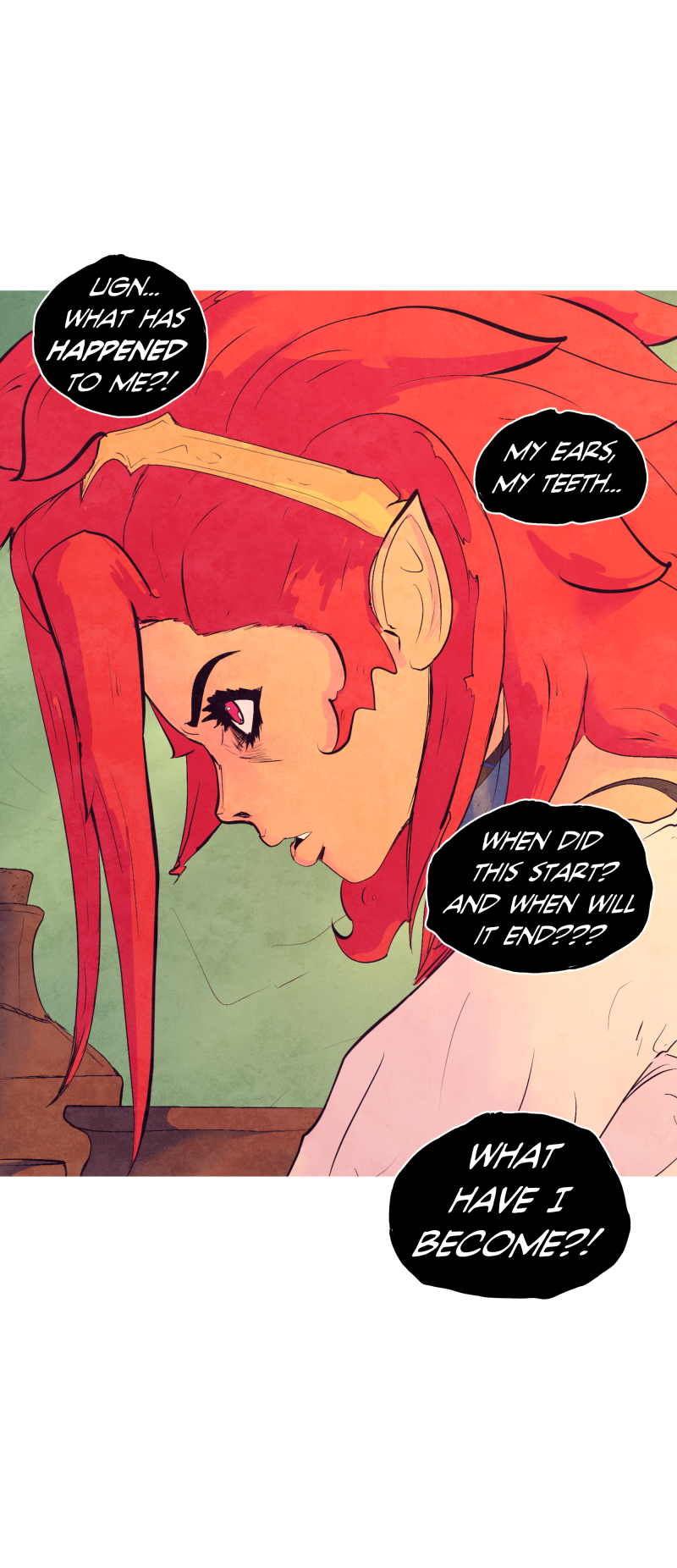 An unfortunate red haired girl woke up in a dark, strange world full of dangerous creatures. She finds herself on a journey with an odd companion: the resident supervillain who took her prisoner. Though moody and stoic, she finds the villainous woman is still somehow... intriguing?