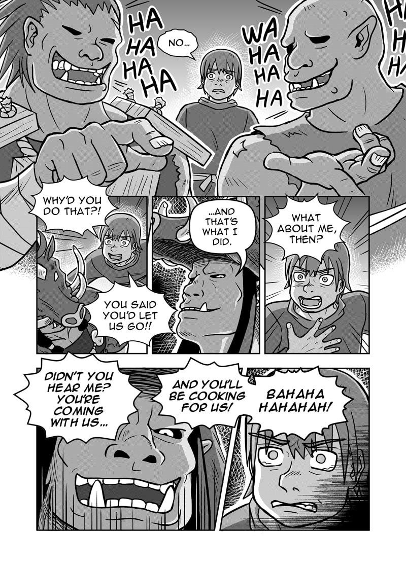 A traveller approaches an ogre fortress and asks to stay the night in the ogre cook's kitchen. There, the ogre cook recounts his experiences to the traveller.