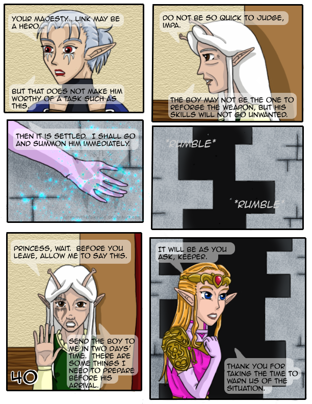 'Legend of Zelda', it's characters and locations are owned by Nintendo, and are therefore copyrighted by law. The creator makes no profit off of this comic; it is merely the means to express her love and passion for the series.