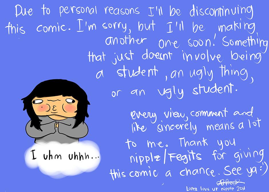 I'm sorry but it's time to hang up the uniform... and blanket. I'll be making a new comic and I'll surely be dedicated to this new one for realzzz. Thanks for everything nipplz. I luv u.