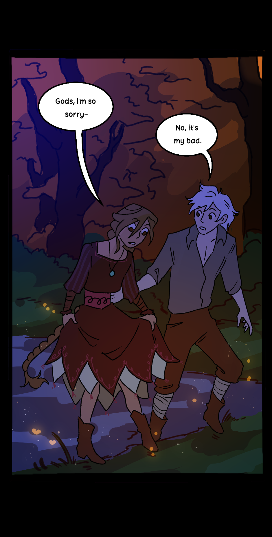 Tilda, an outgoing witch, must leave her isolated coven in order to save her sisters from a mysterious curse. On the way, she meets and curses a moody prince, transforming him into a wolf. The two strike a deal, and must traverse a hostile, anti-magic, land in the hopes of saving each of their peoples. Throughout the journey, something more starts to bloom between them.