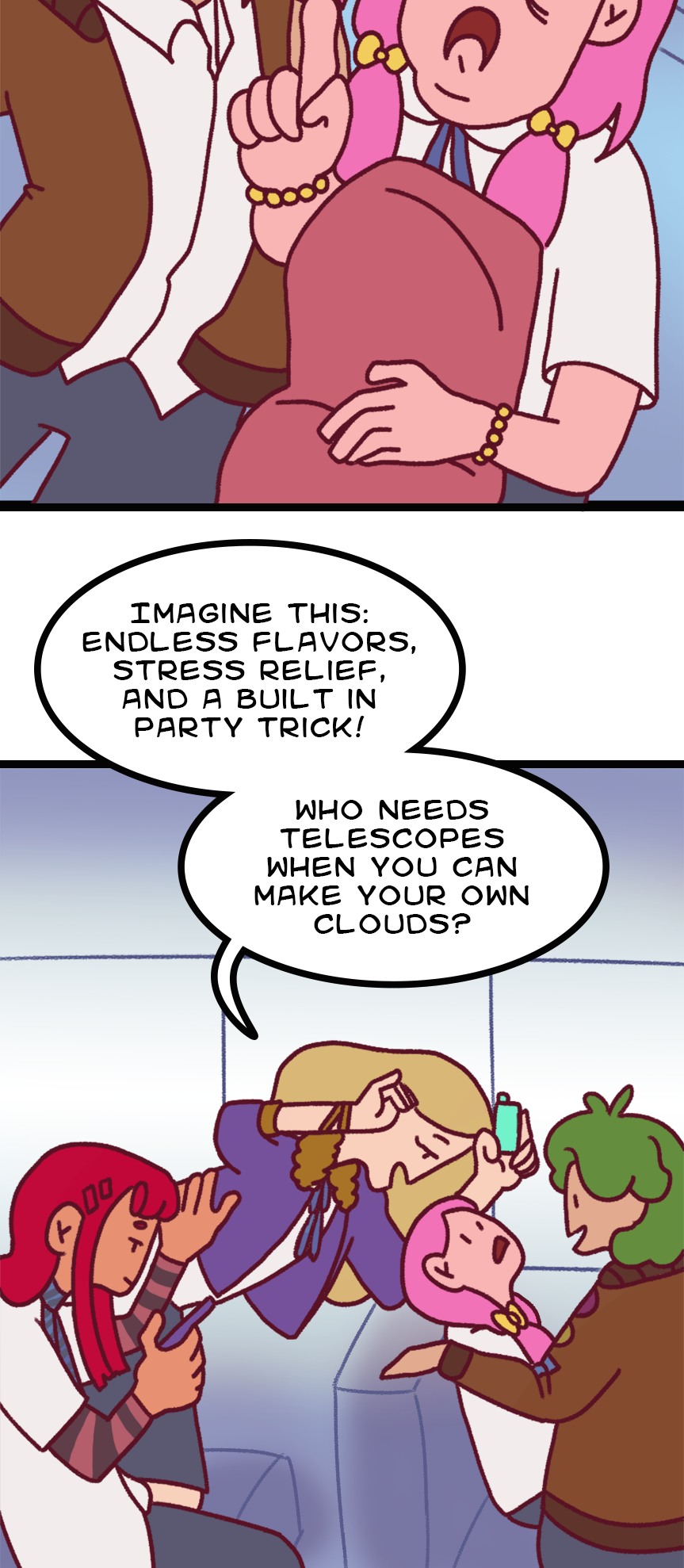You, as the reader, will take our main character through different scenarios that may influence them to start e-cigarette use. It is up to you to alter the story, whether for better or for worse.