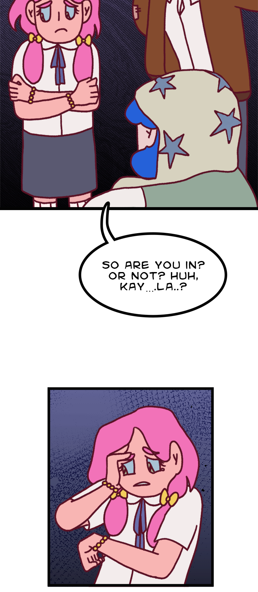 Chasing the Haze is a Multi-Ending Choose-Your-Own-Adventure webcomic where you, as the reader, guide our main character, Kayla, in her journey as a new student in a new school.