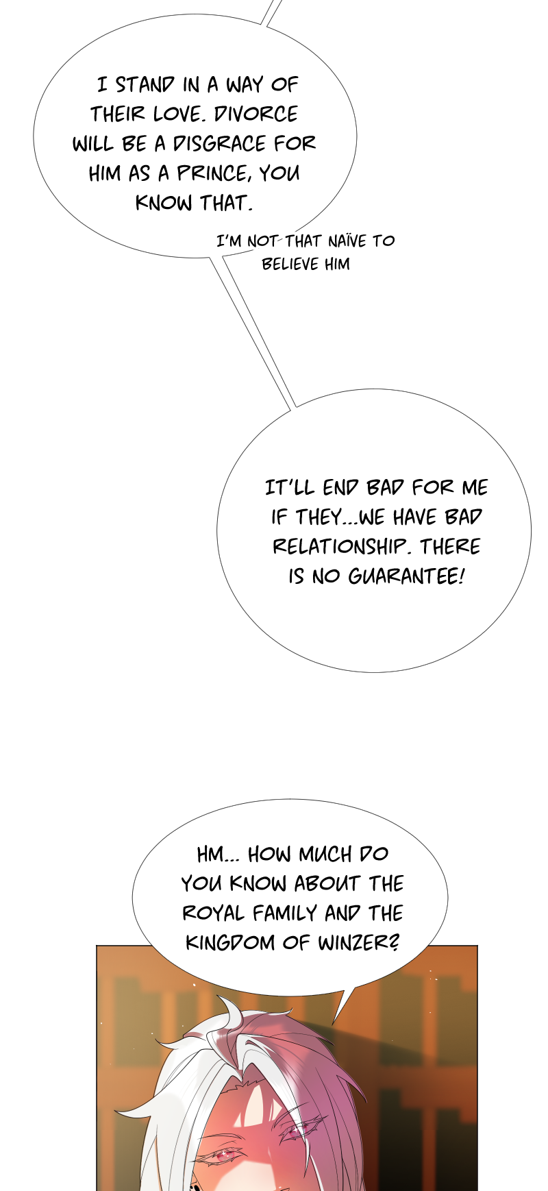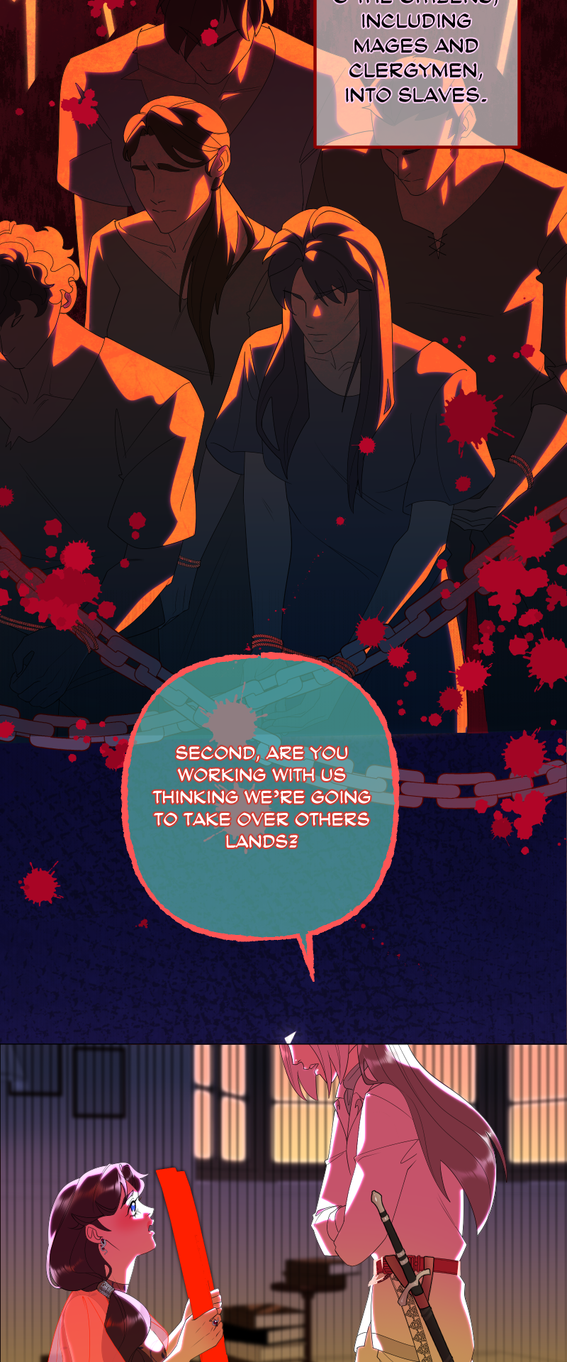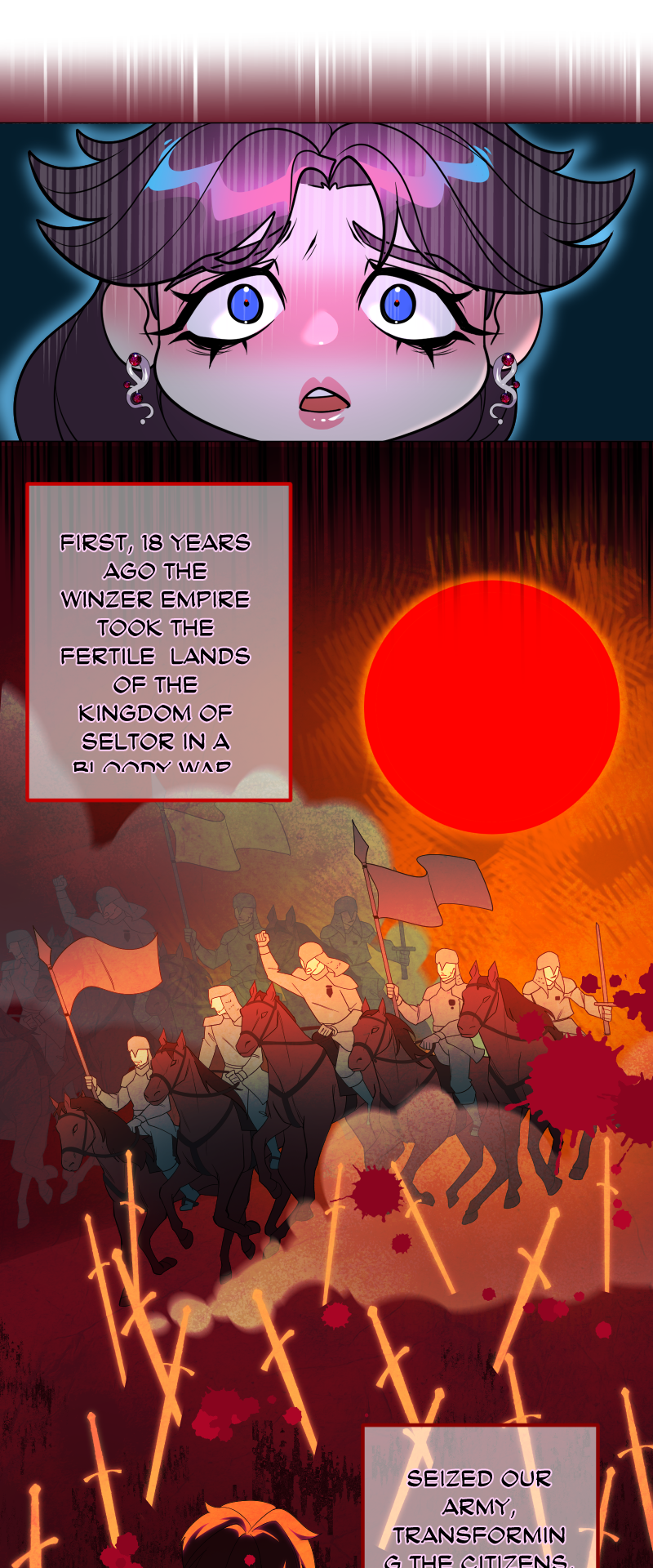 Lilith: "I read a short story about a princess. Is that corny? Yes, it was. Guess what happened next...I woke up with a dagger to my neck. The prince is plotting against me, and the church is happy to have a new saint. I'm facing death and..."