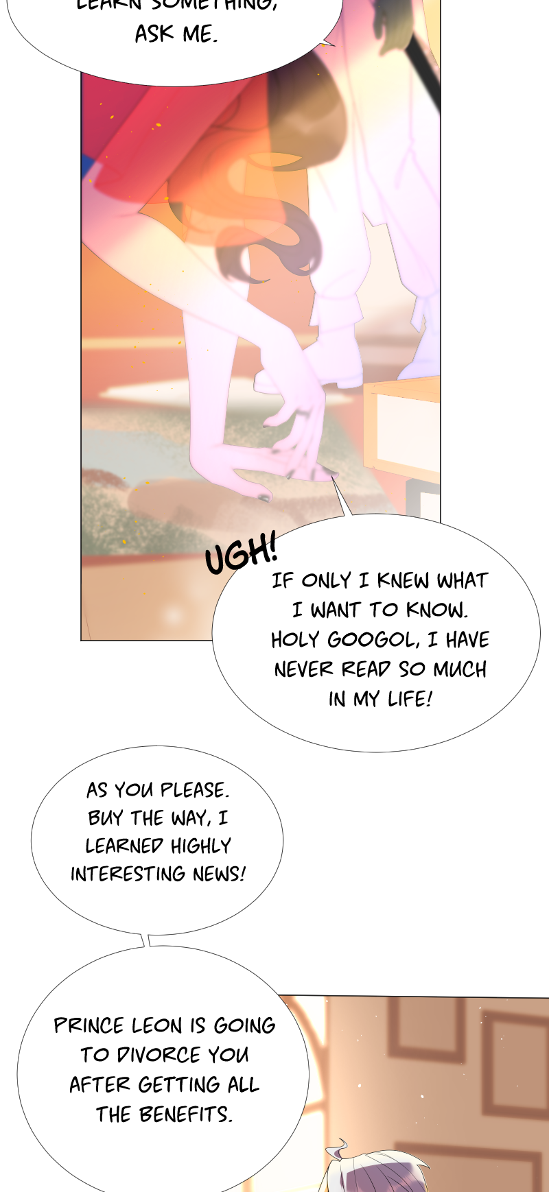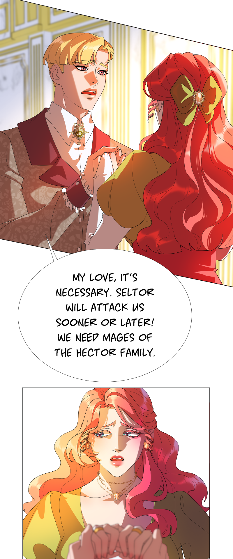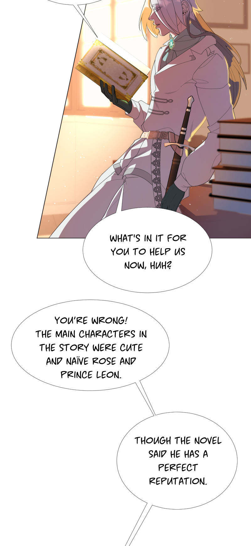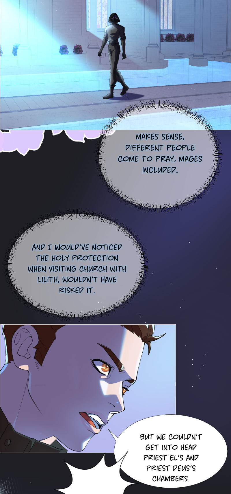 Lilith: "I read a short story about a princess. Is that corny? Yes, it was. Guess what happened next...I woke up with a dagger to my neck. The prince is plotting against me, and the church is happy to have a new saint. I'm facing death and..."