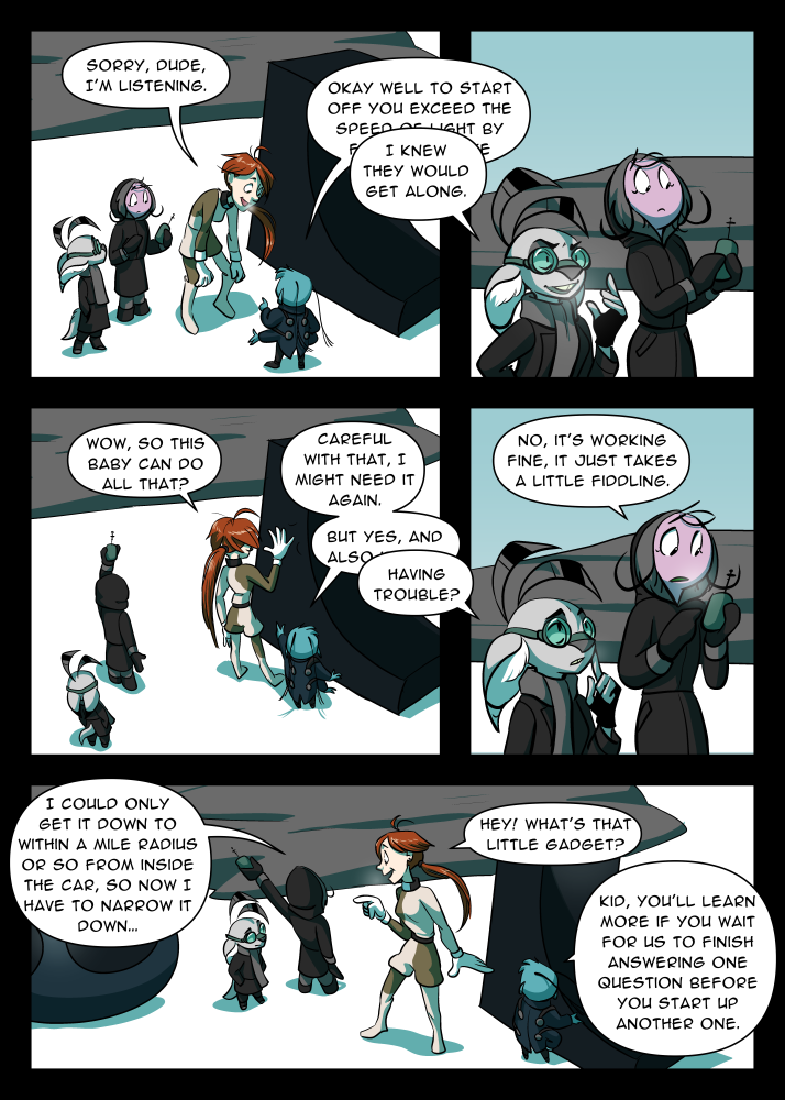 Two aliens must discover how to sever their accidental psychic connection with a dangerous piece of experimental technology, while avoiding being discovered by Earth's population, and also keeping their excitable and well-meaning friends from getting in the way. (Sequel to KiLA iLO; you shouldn't have to read that comic to follow the story in this one, but it might help)
