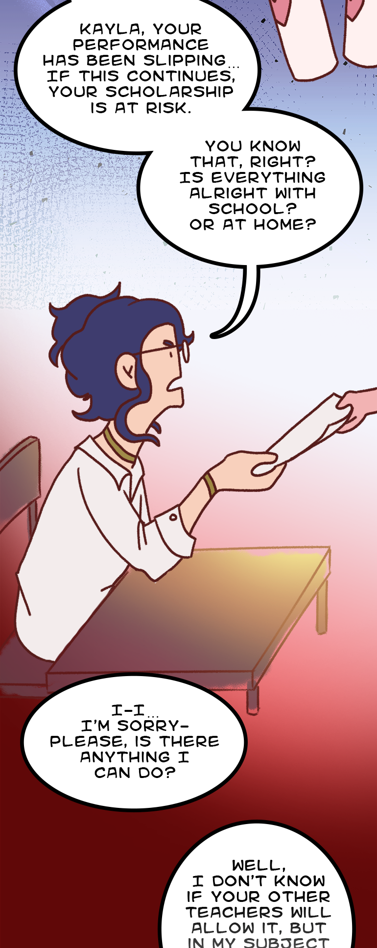 Chasing the Haze is a Multi-Ending Choose-Your-Own-Adventure webcomic where you, as the reader, guide our main character, Kayla, in her journey as a new student in a new school.